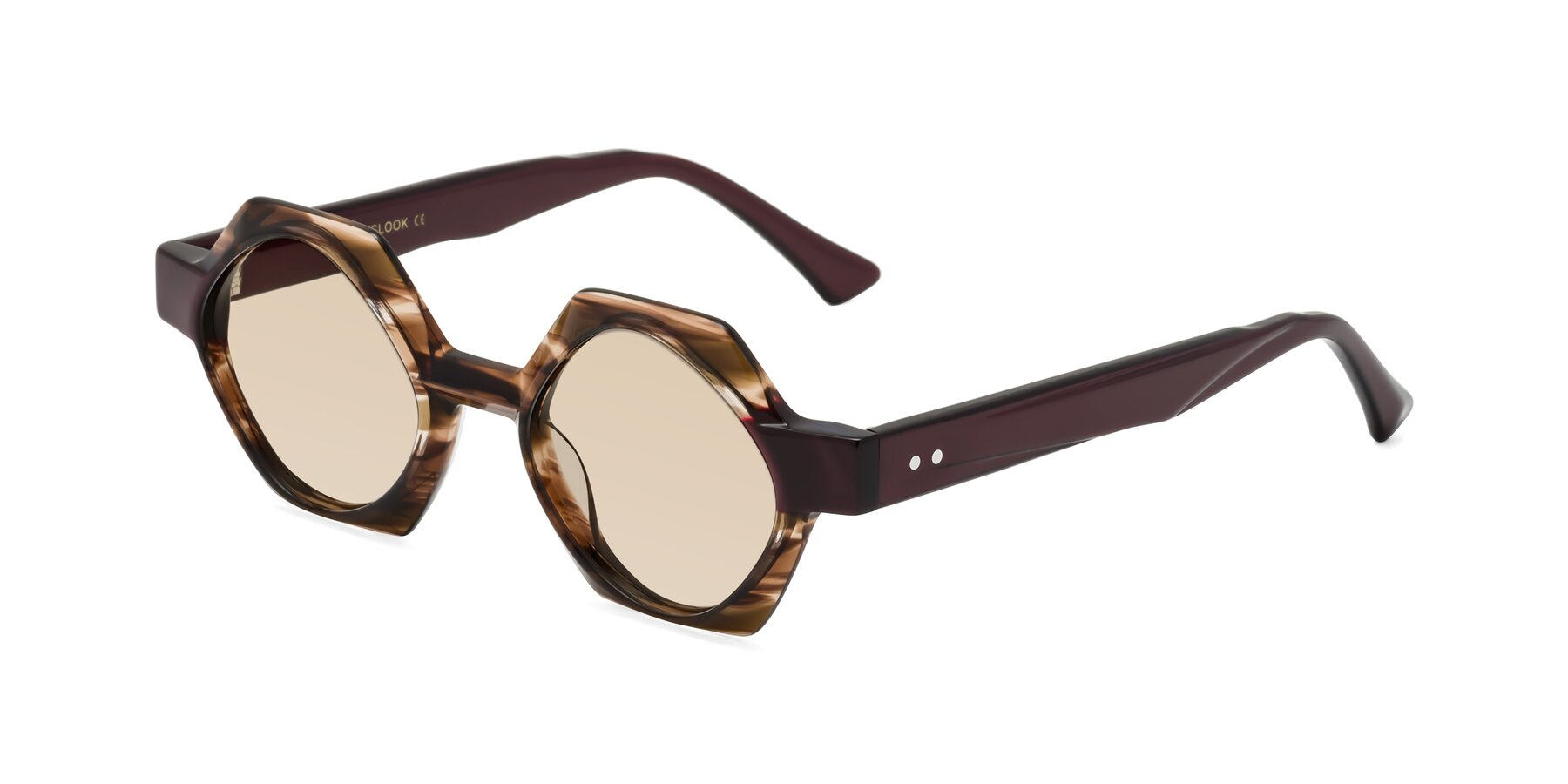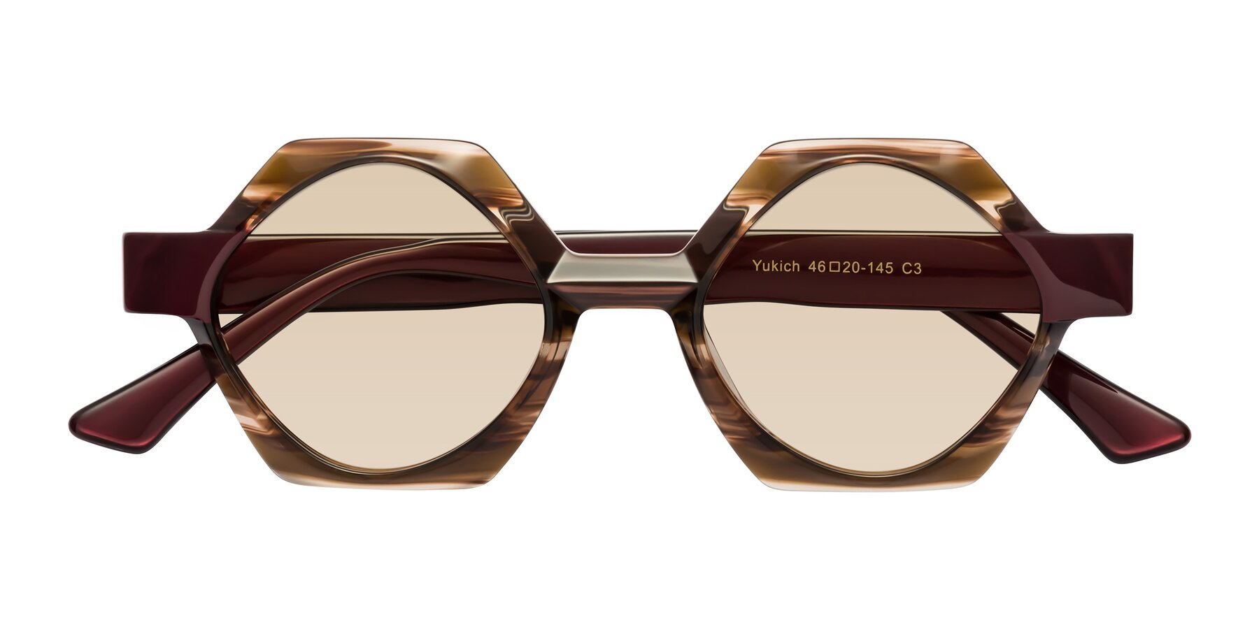 Brown Striped Designer Round Geometric Tinted Sunglasses with Light Brown Sunwear Lenses