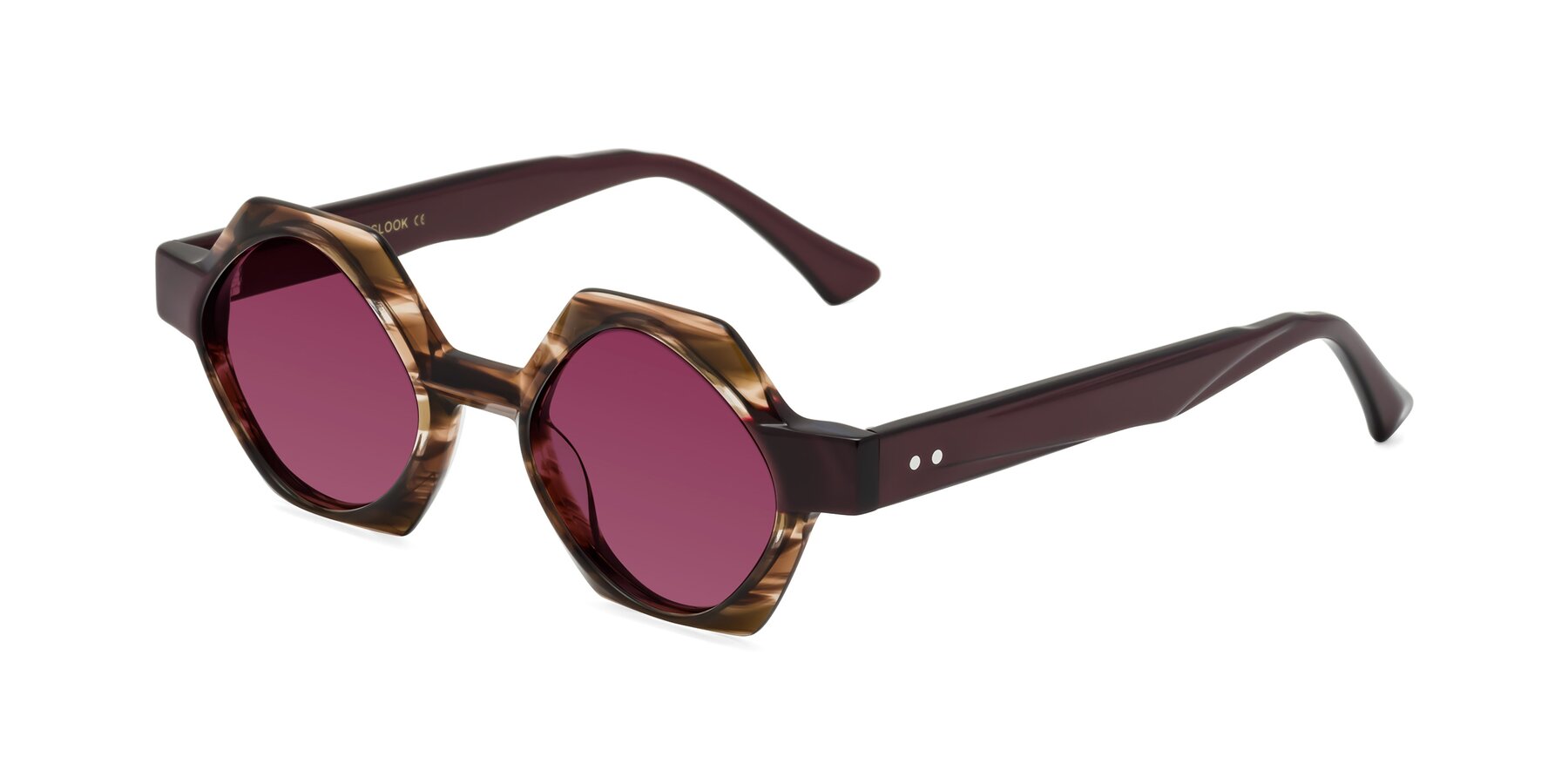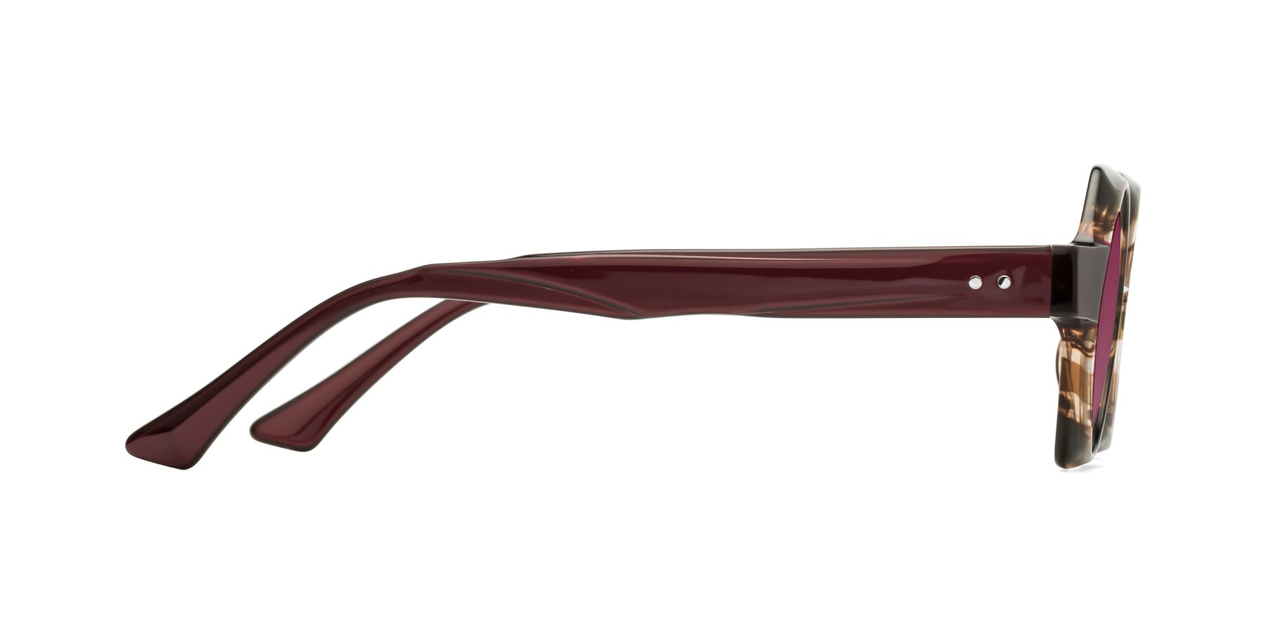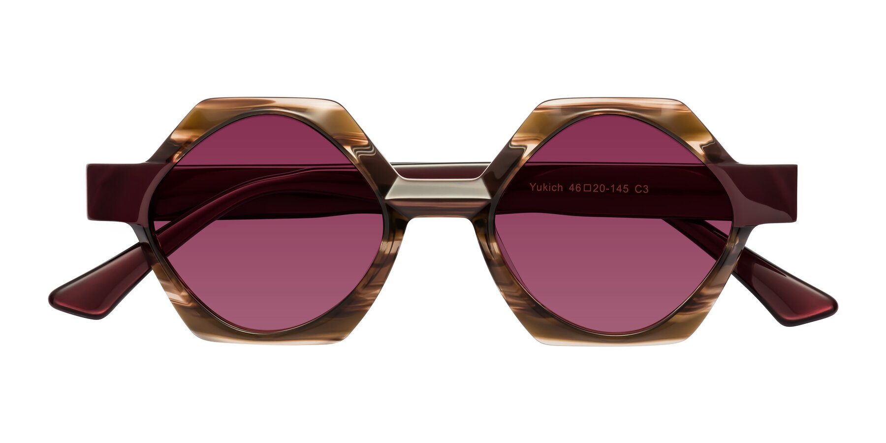 Brown Striped Designer Round Geometric Tinted Sunglasses with Wine Sunwear Lenses