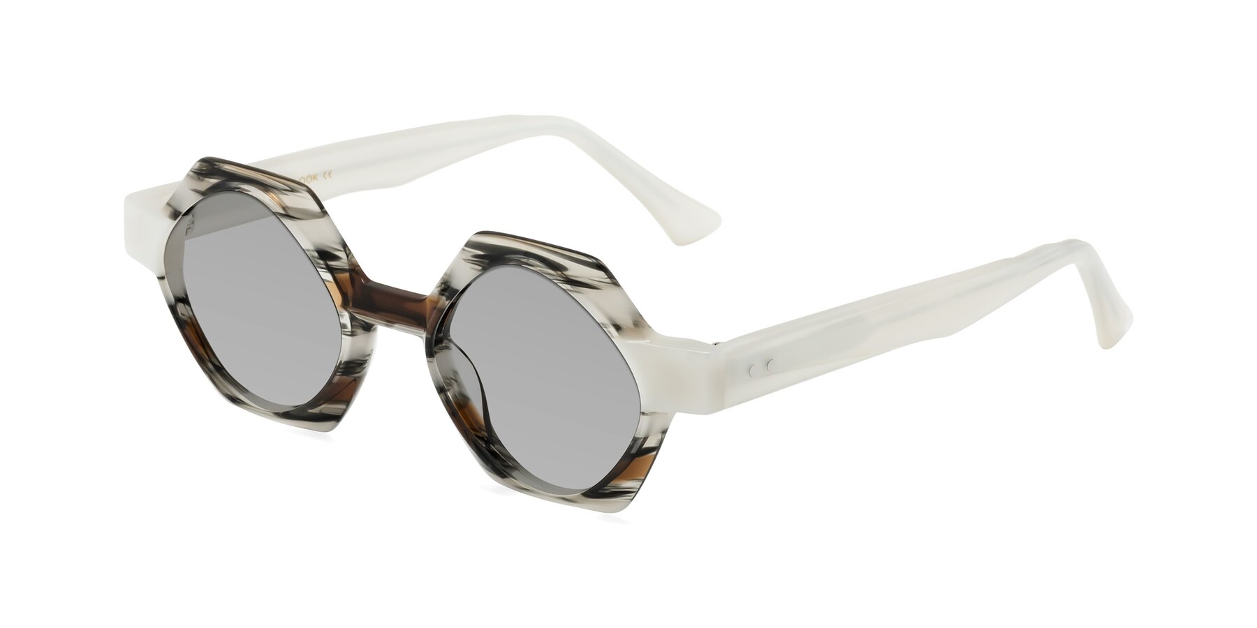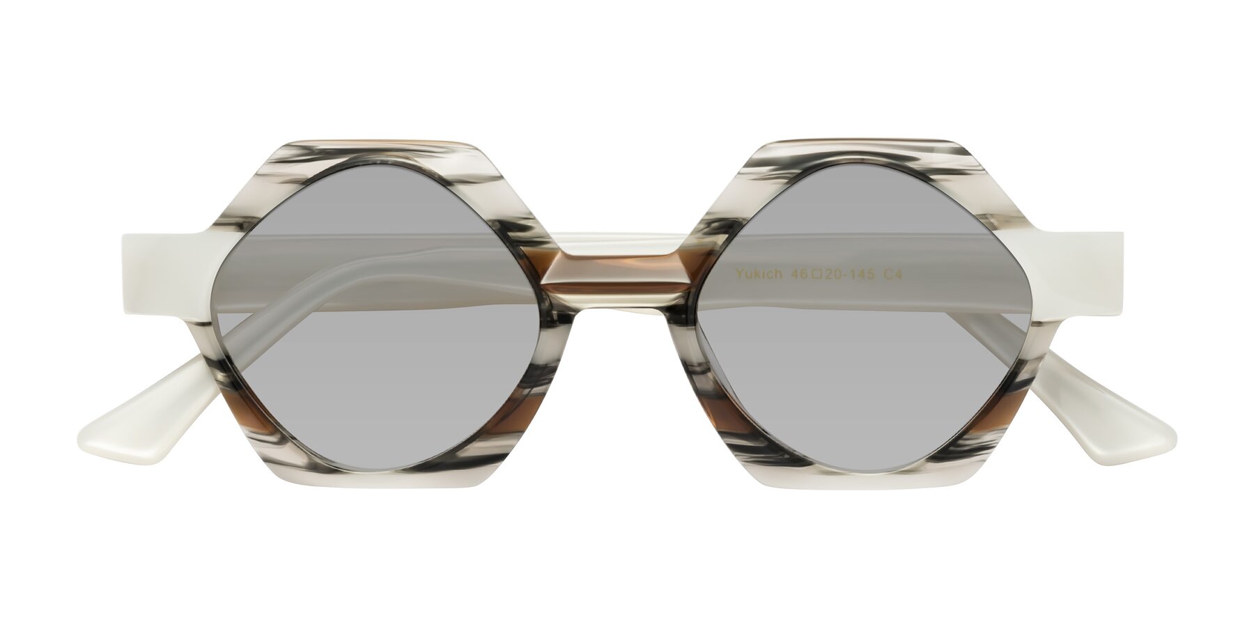Black Striped Designer Round Geometric Tinted Sunglasses with Light Gray Sunwear Lenses