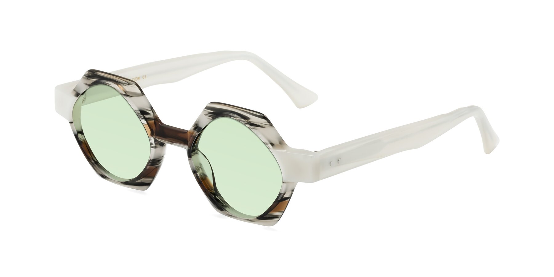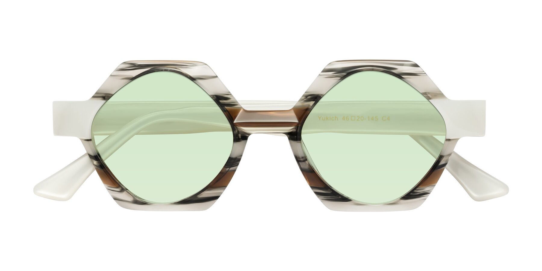 Black Striped Designer Round Geometric Tinted Sunglasses with Light Green Sunwear Lenses