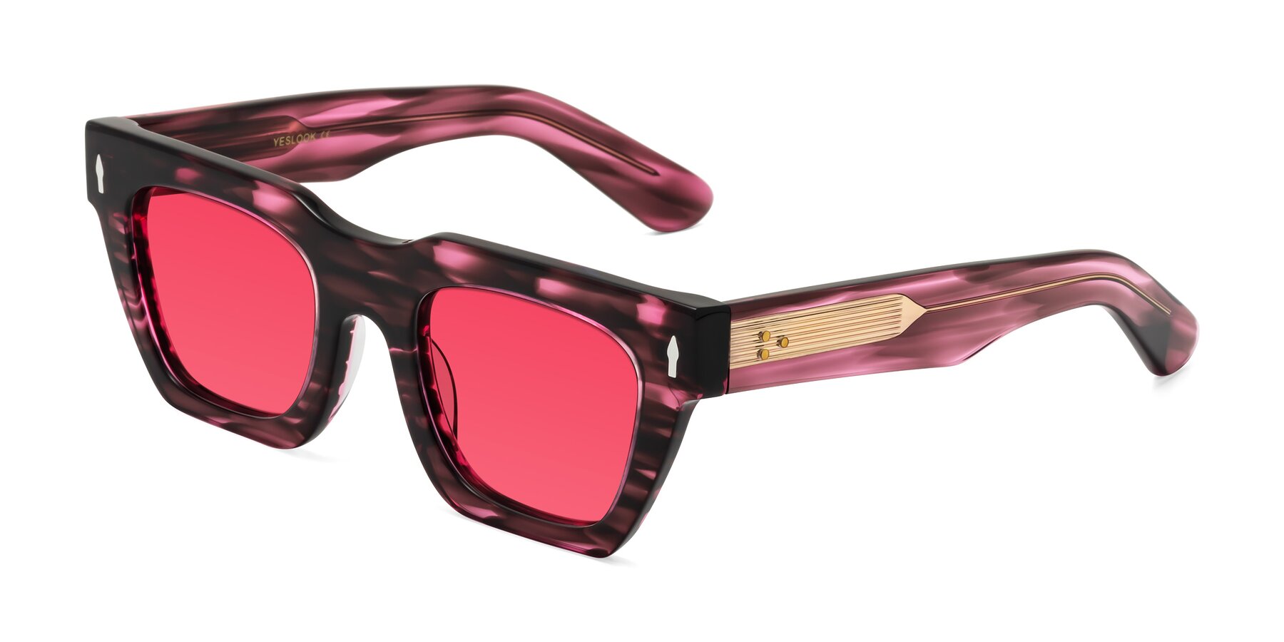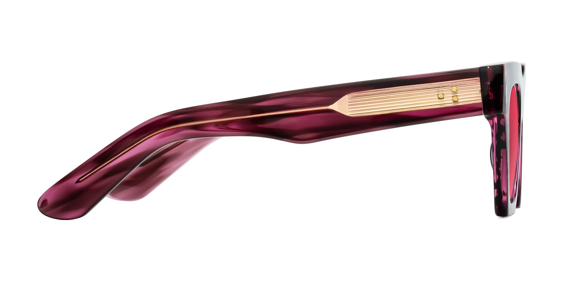 Wine Berry Striped Hipster Designer Trapezoid Tinted Sunglasses with Red Sunwear Lenses