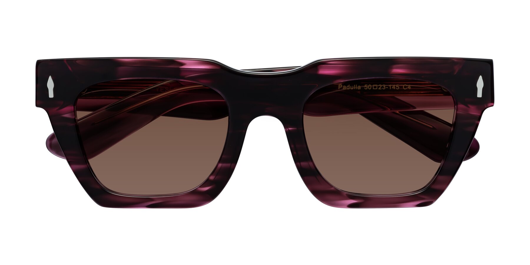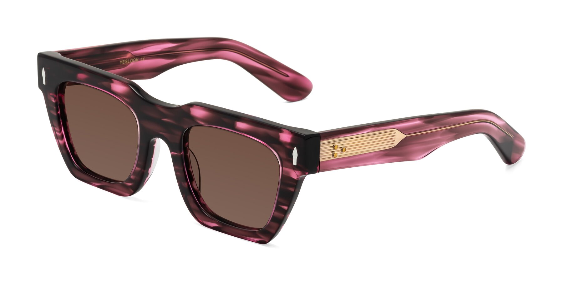 Wine Berry Striped Hipster Designer Trapezoid Tinted Sunglasses with Brown Sunwear Lenses