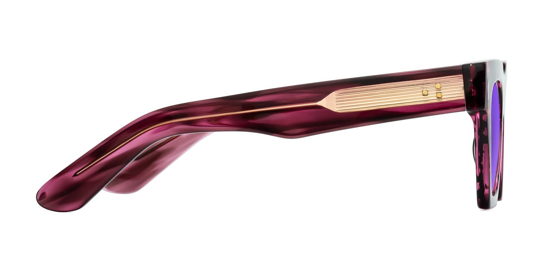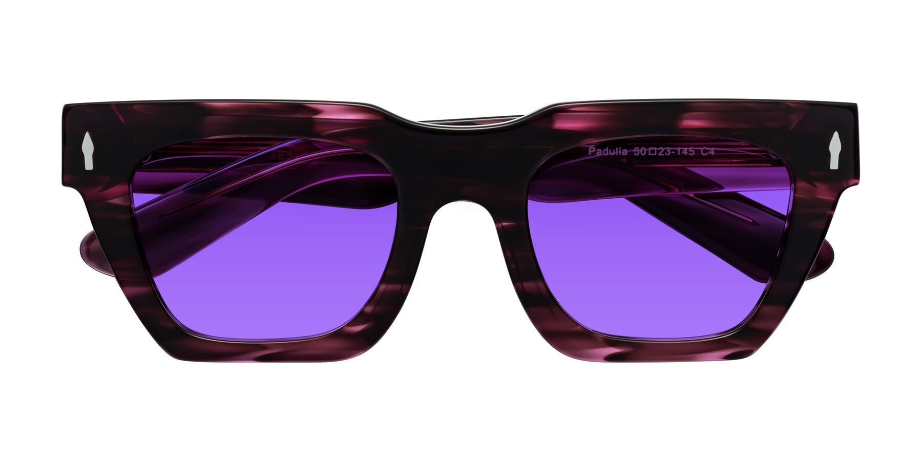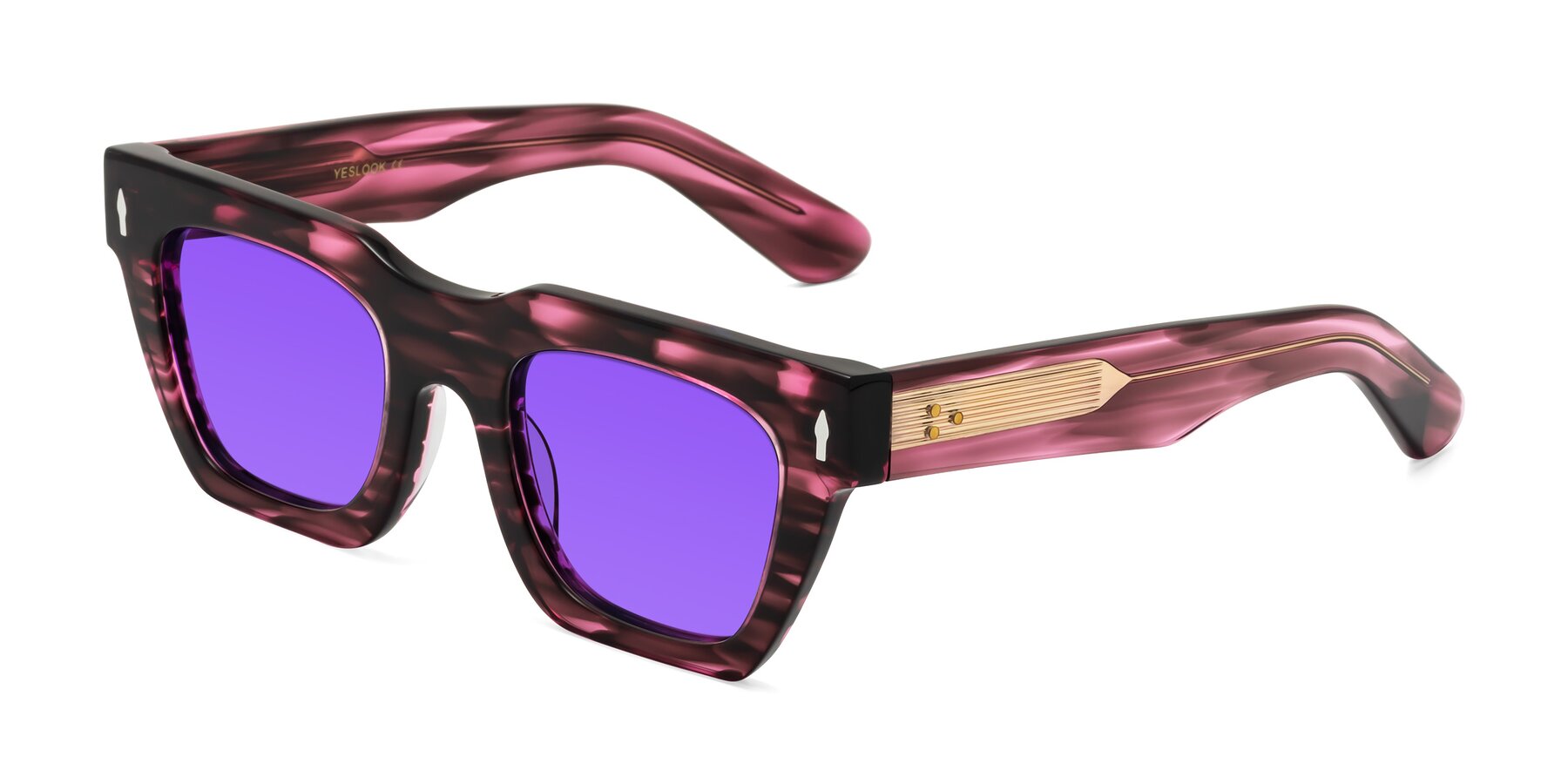 Wine Berry Striped Hipster Designer Trapezoid Tinted Sunglasses with Purple Sunwear Lenses