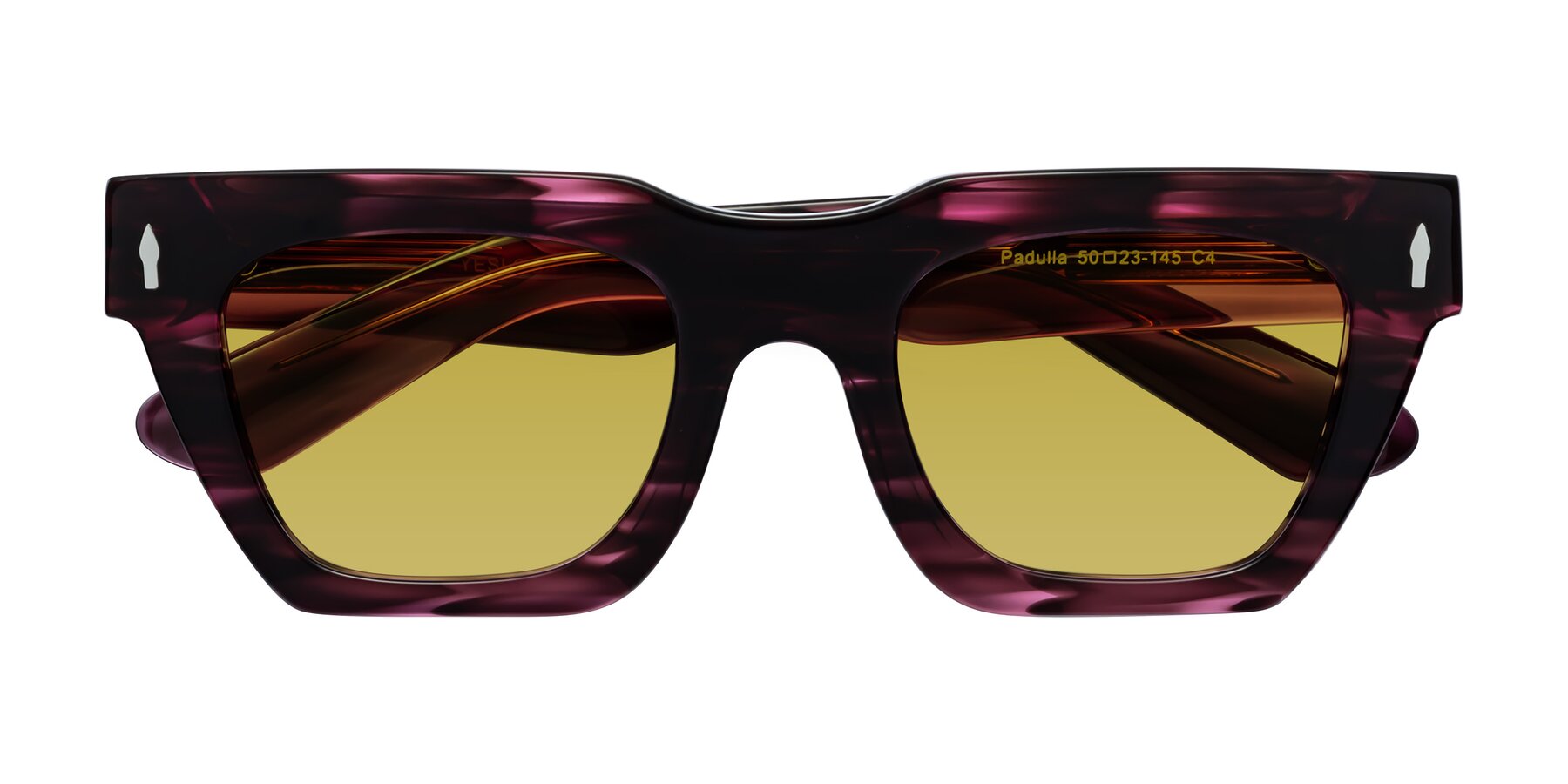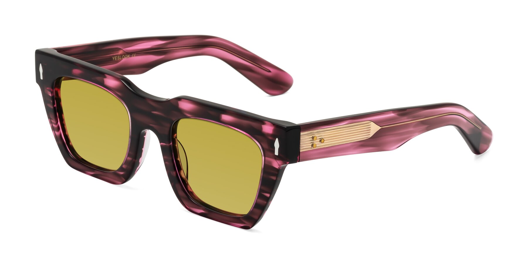 Wine Berry Striped Hipster Designer Trapezoid Tinted Sunglasses with Champagne Sunwear Lenses