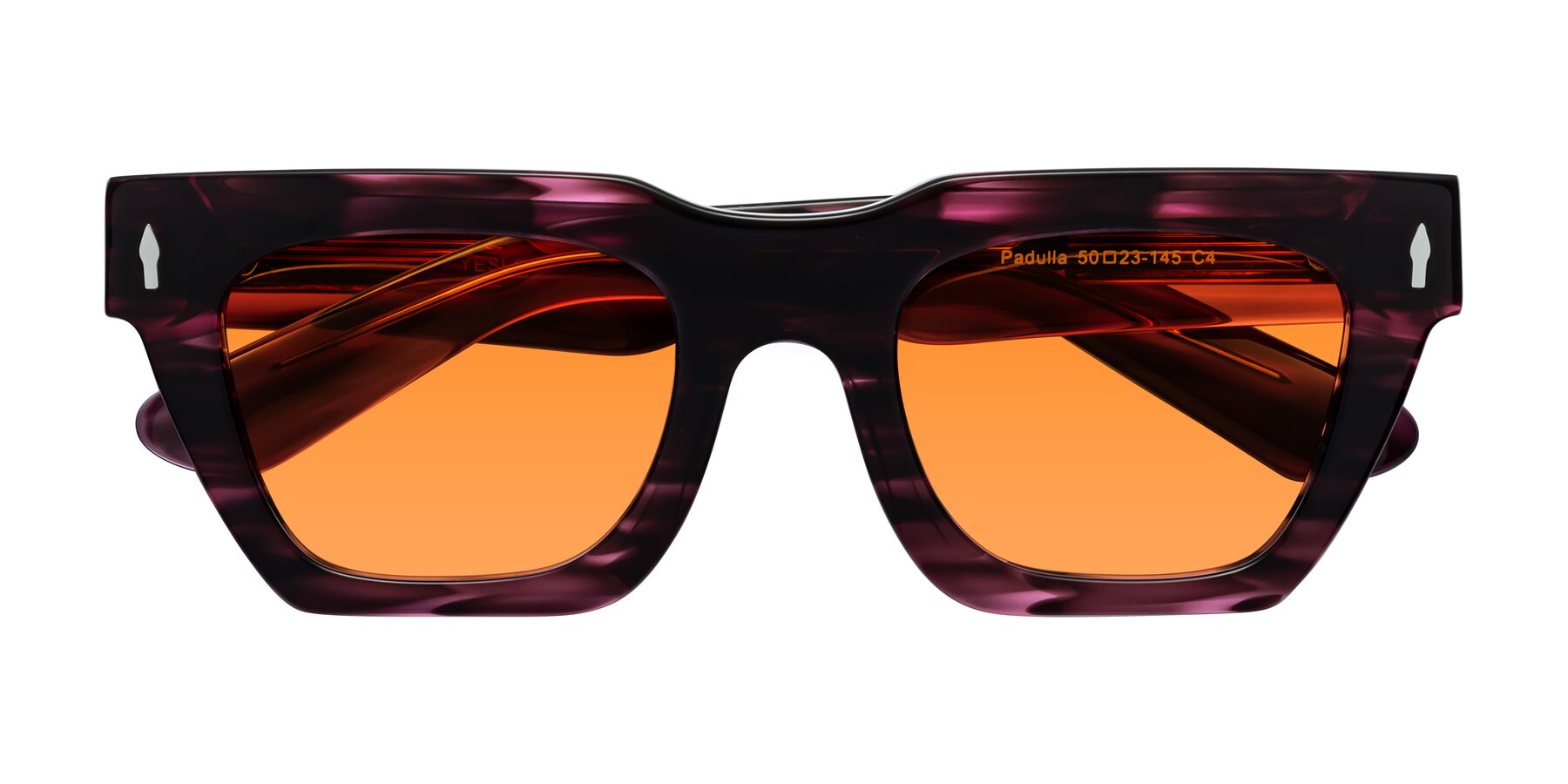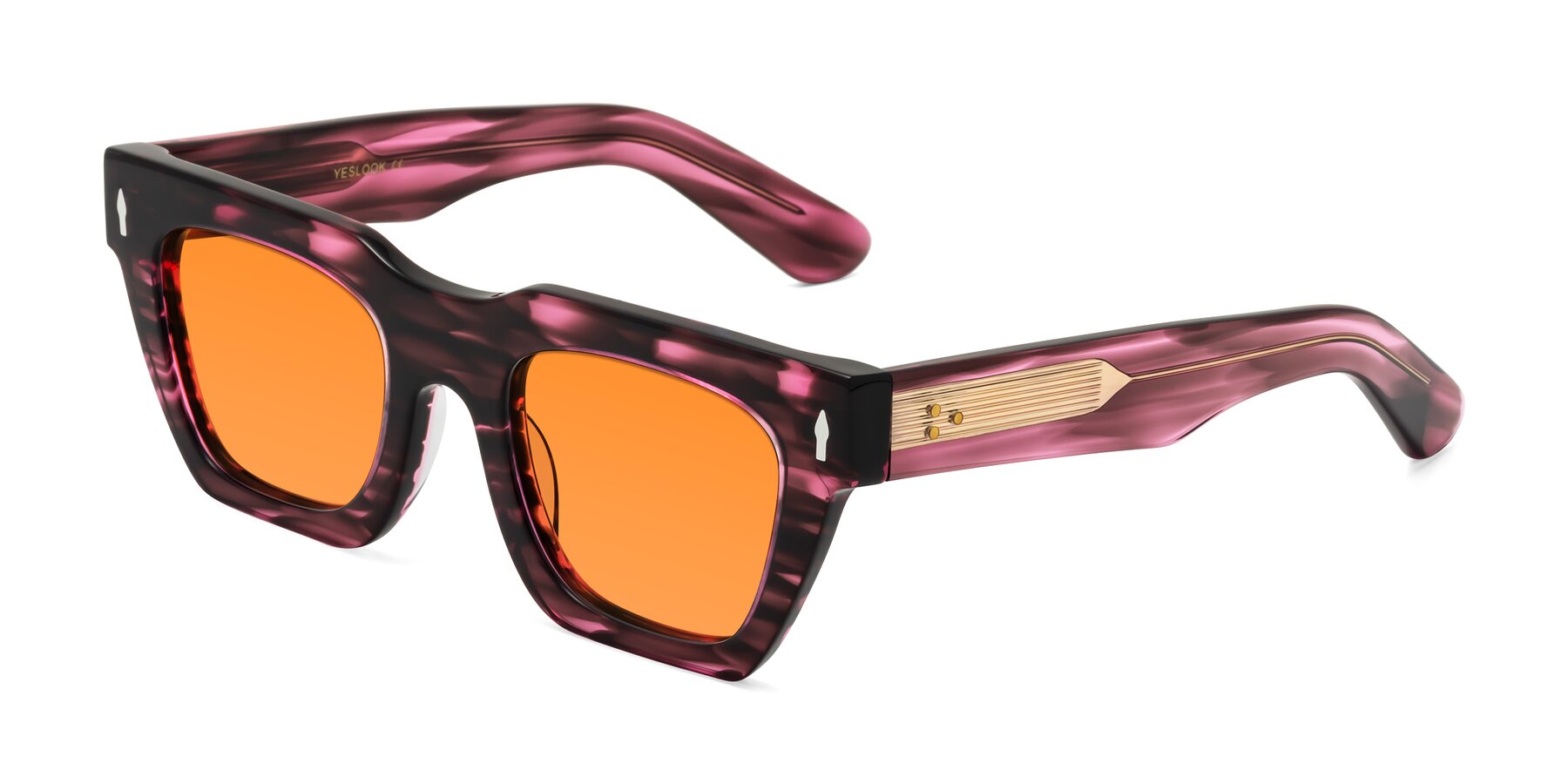 Wine Berry Striped Hipster Designer Trapezoid Tinted Sunglasses with Orange Sunwear Lenses