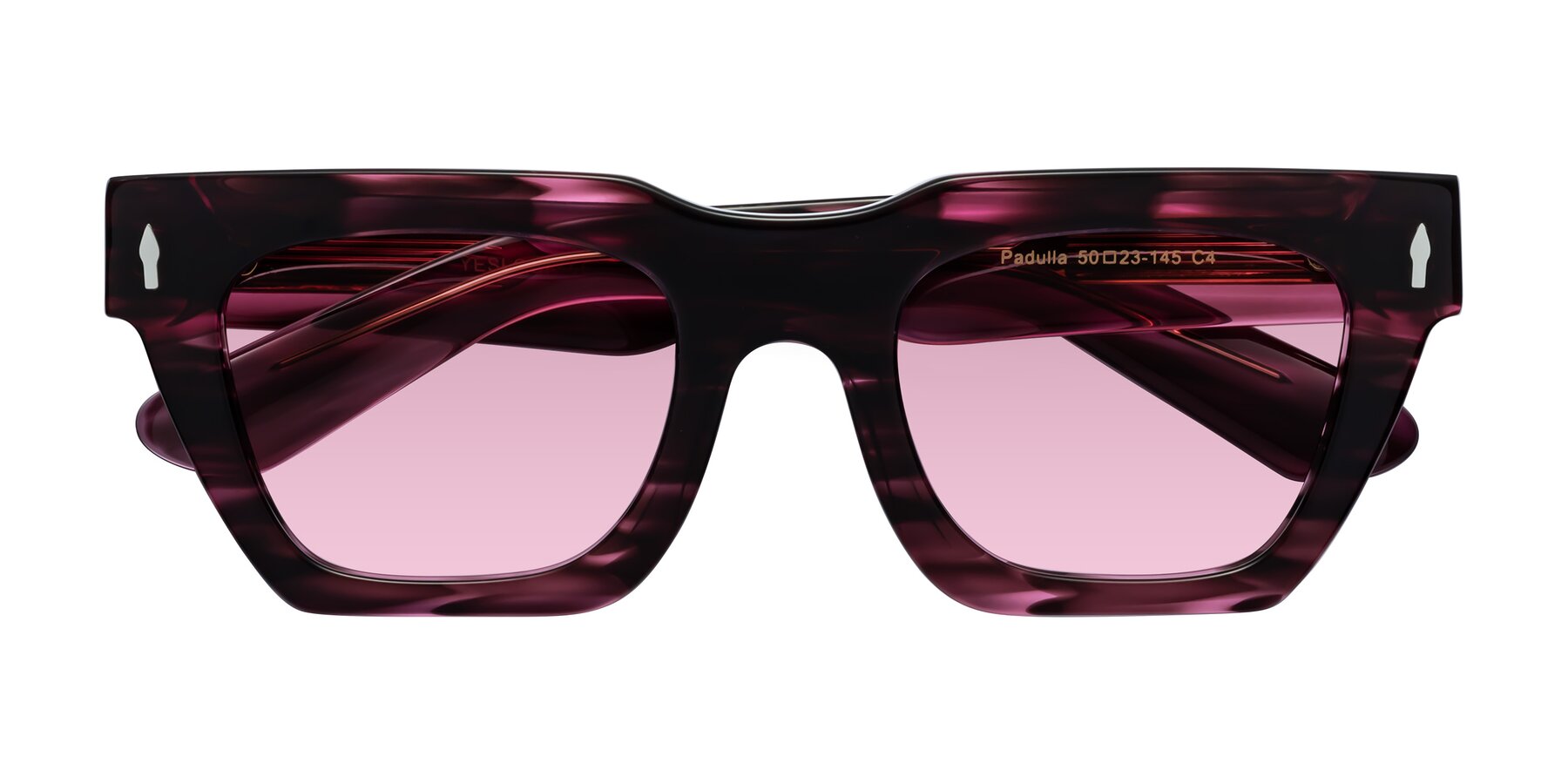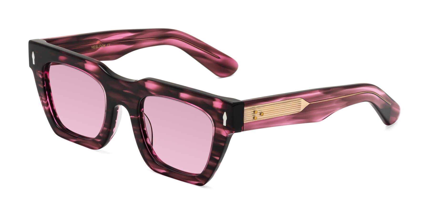 Wine Berry Striped Hipster Designer Trapezoid Tinted Sunglasses with Light Wine Sunwear Lenses