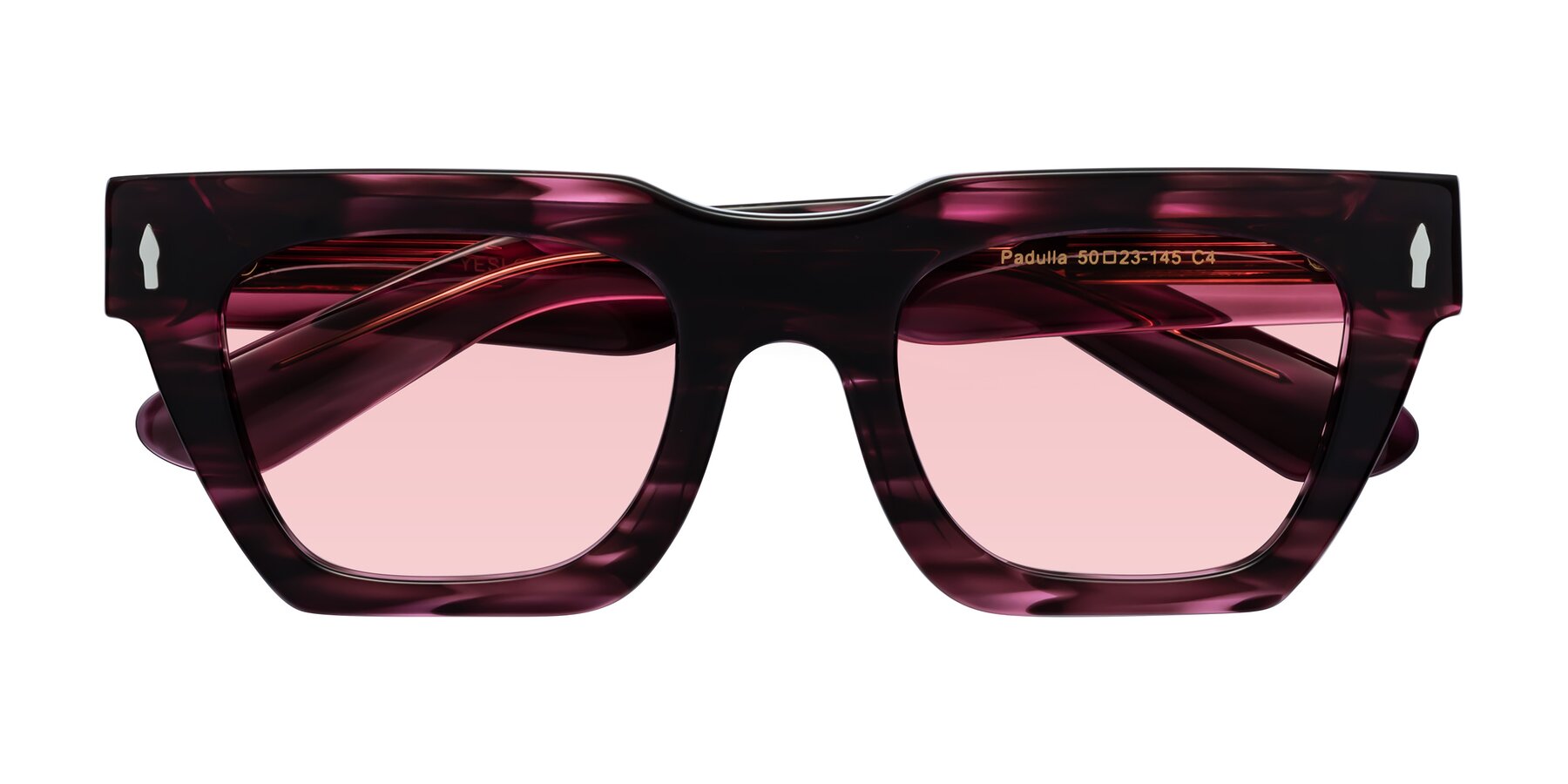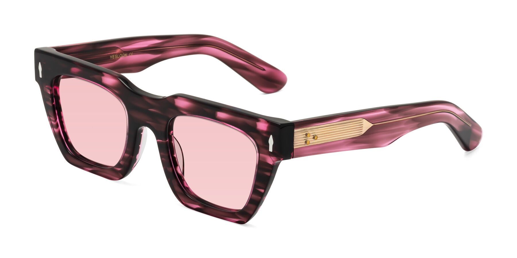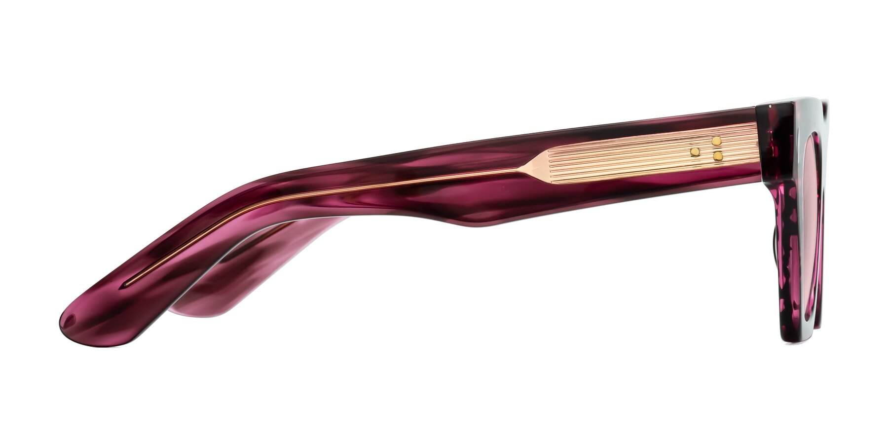 Wine Berry Striped Hipster Designer Trapezoid Tinted Sunglasses with Light Garnet Sunwear Lenses
