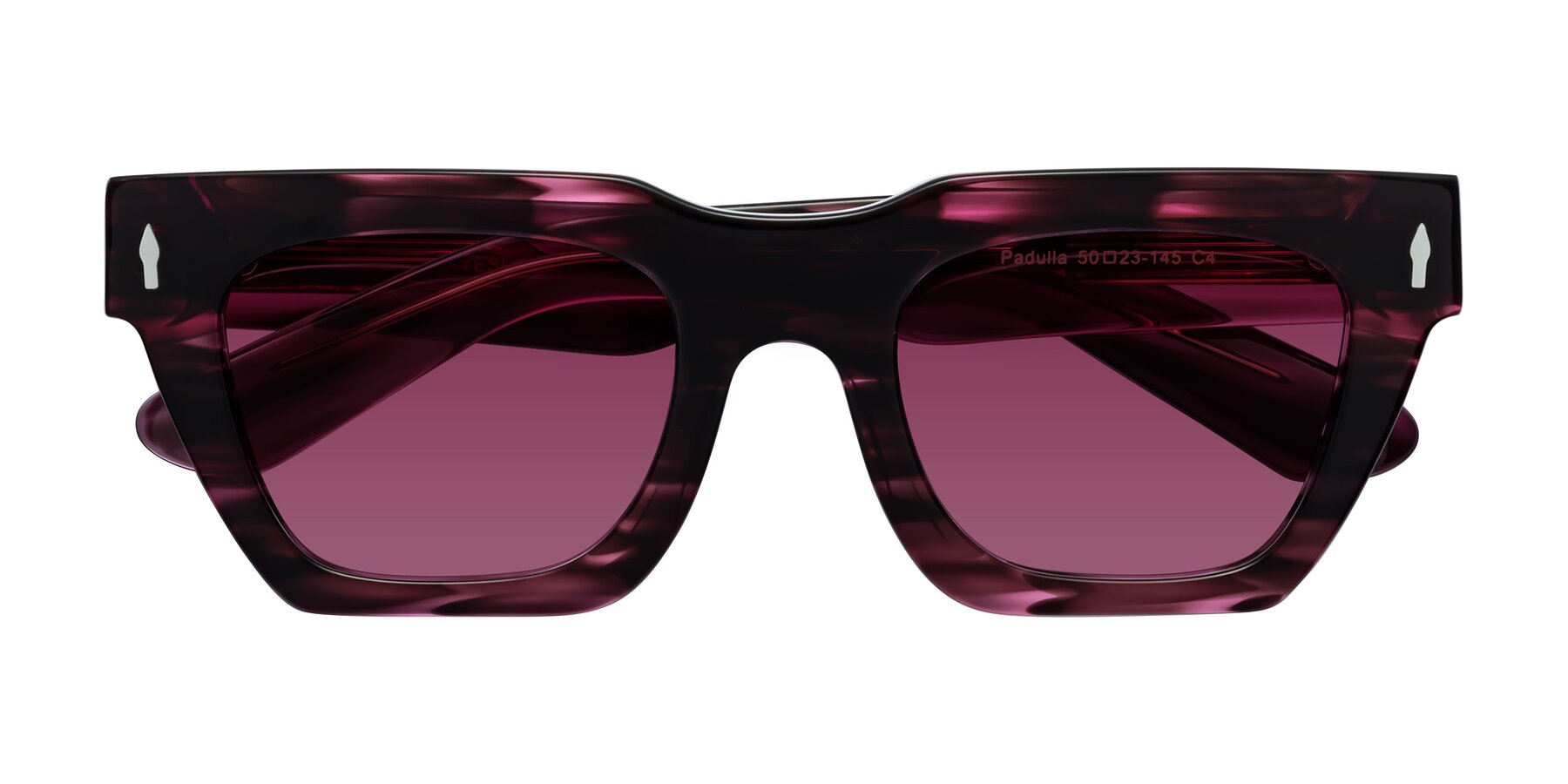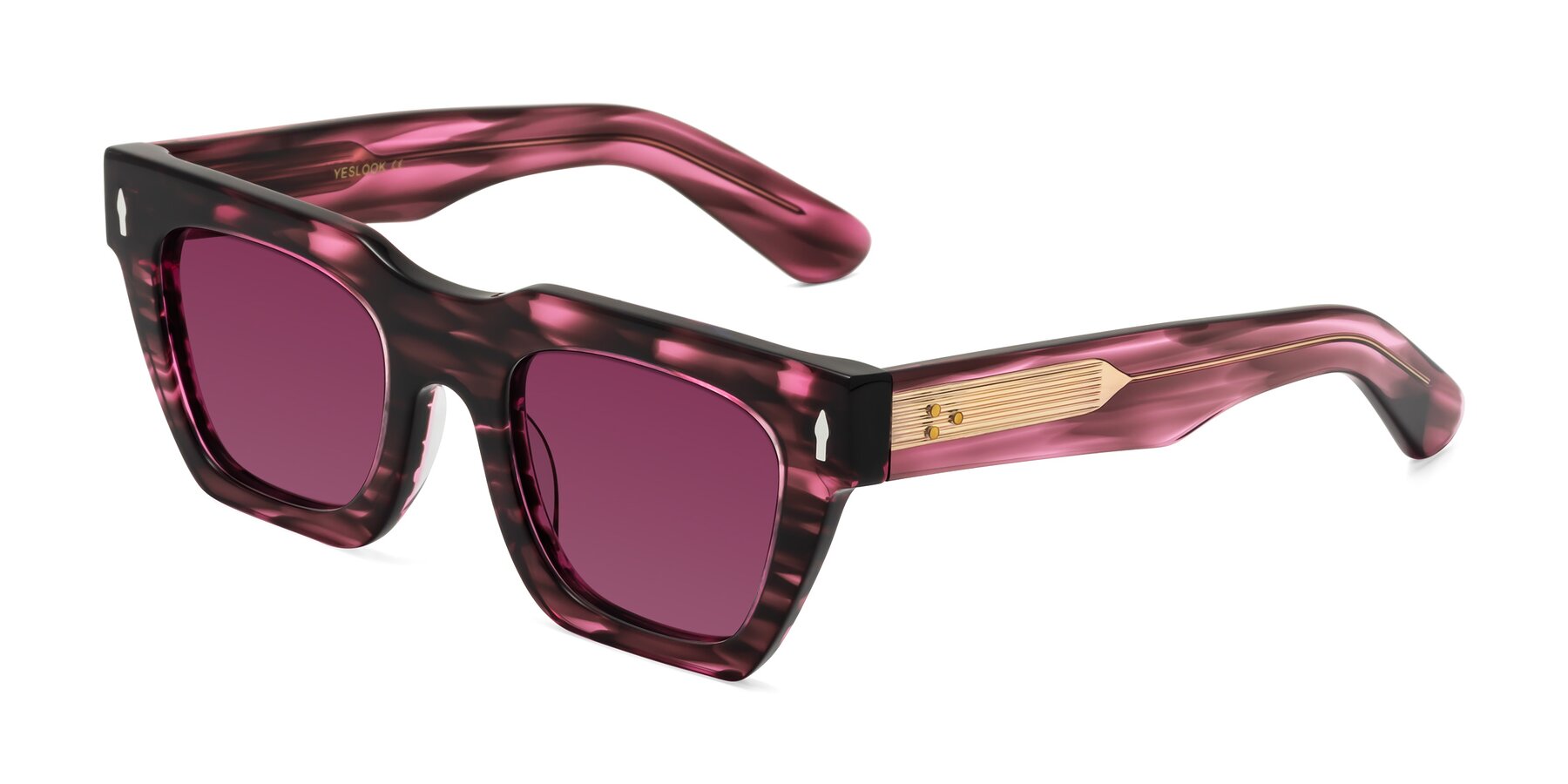 Wine Berry Striped Hipster Designer Trapezoid Tinted Sunglasses with Wine Sunwear Lenses