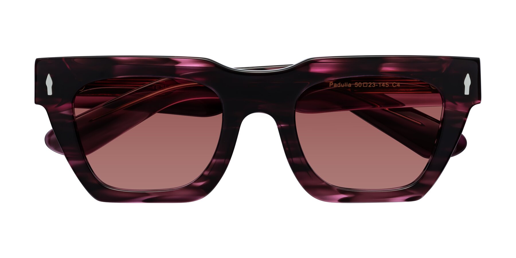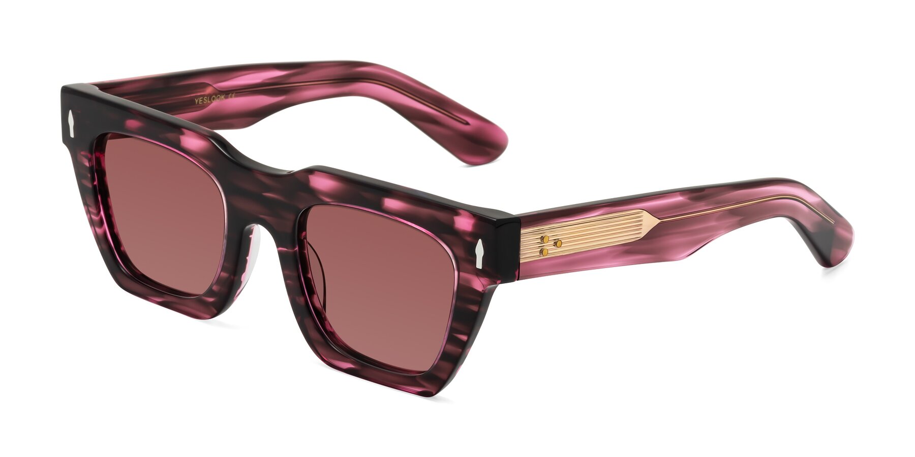 Wine Berry Striped Hipster Designer Trapezoid Tinted Sunglasses with Garnet Sunwear Lenses