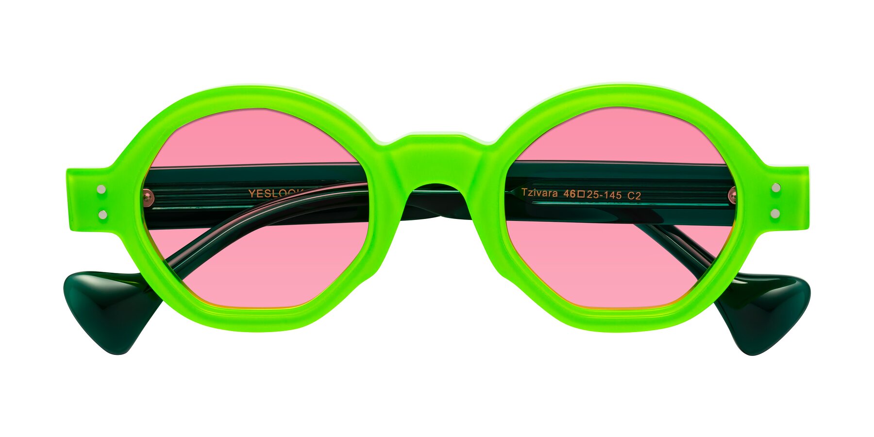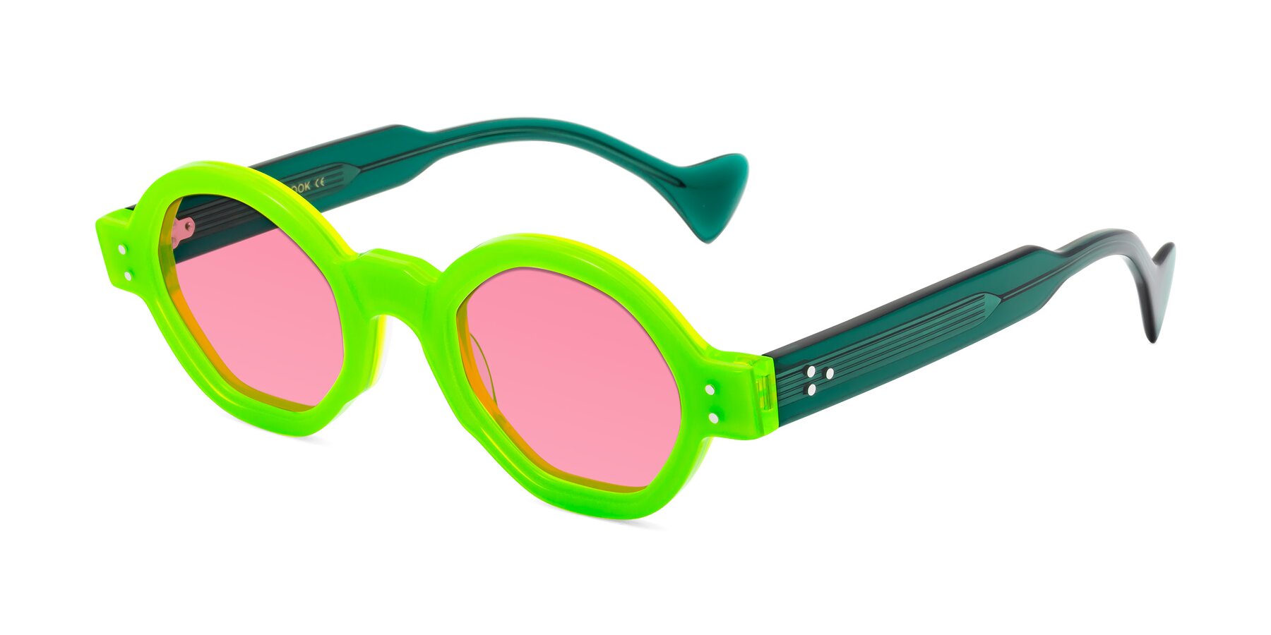 Neon Green Retro-Vintage Designer Round Tinted Sunglasses with Pink Sunwear Lenses