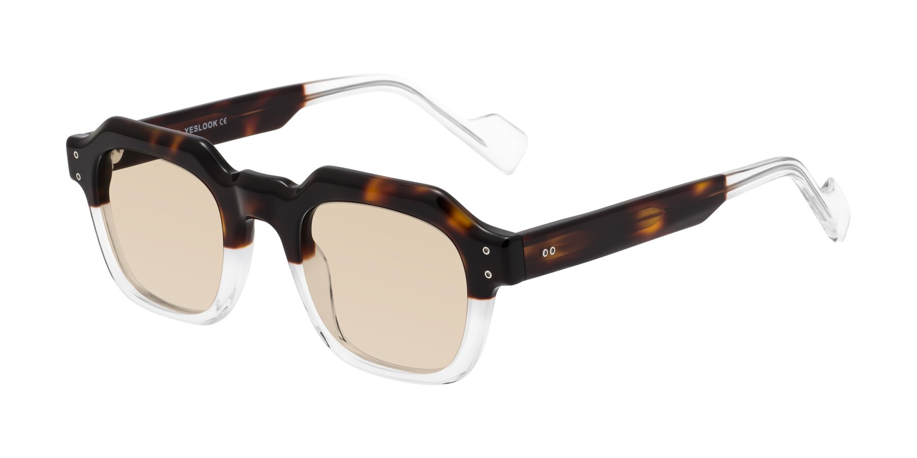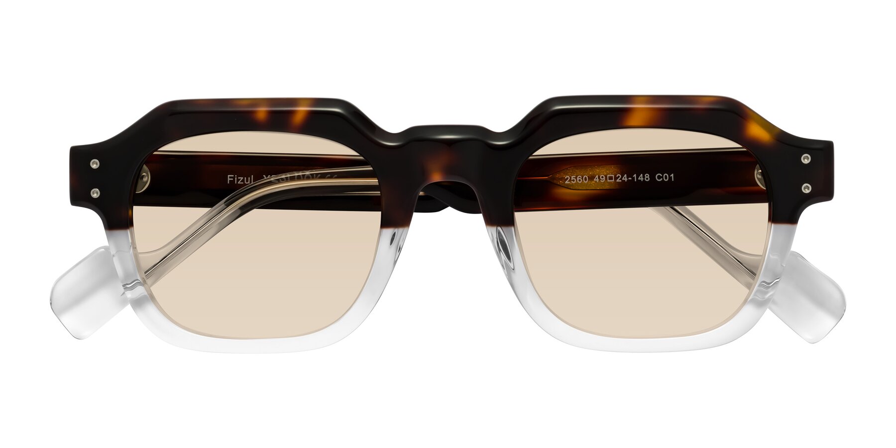 Tortoise/Clear Retro-Vintage Geometric Full-Rim Tinted Sunglasses with Light Brown Sunwear Lenses