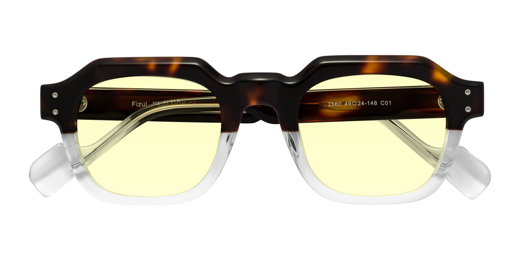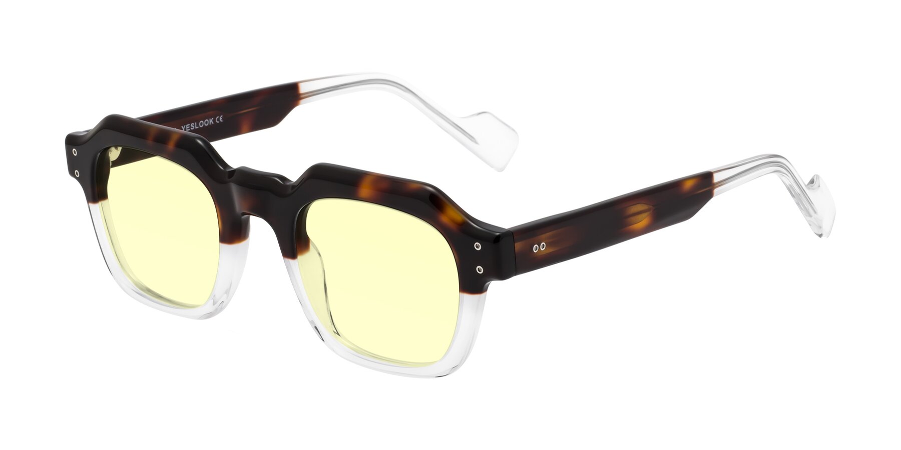 Tortoise/Clear Retro-Vintage Geometric Full-Rim Tinted Sunglasses with Light Yellow Sunwear Lenses