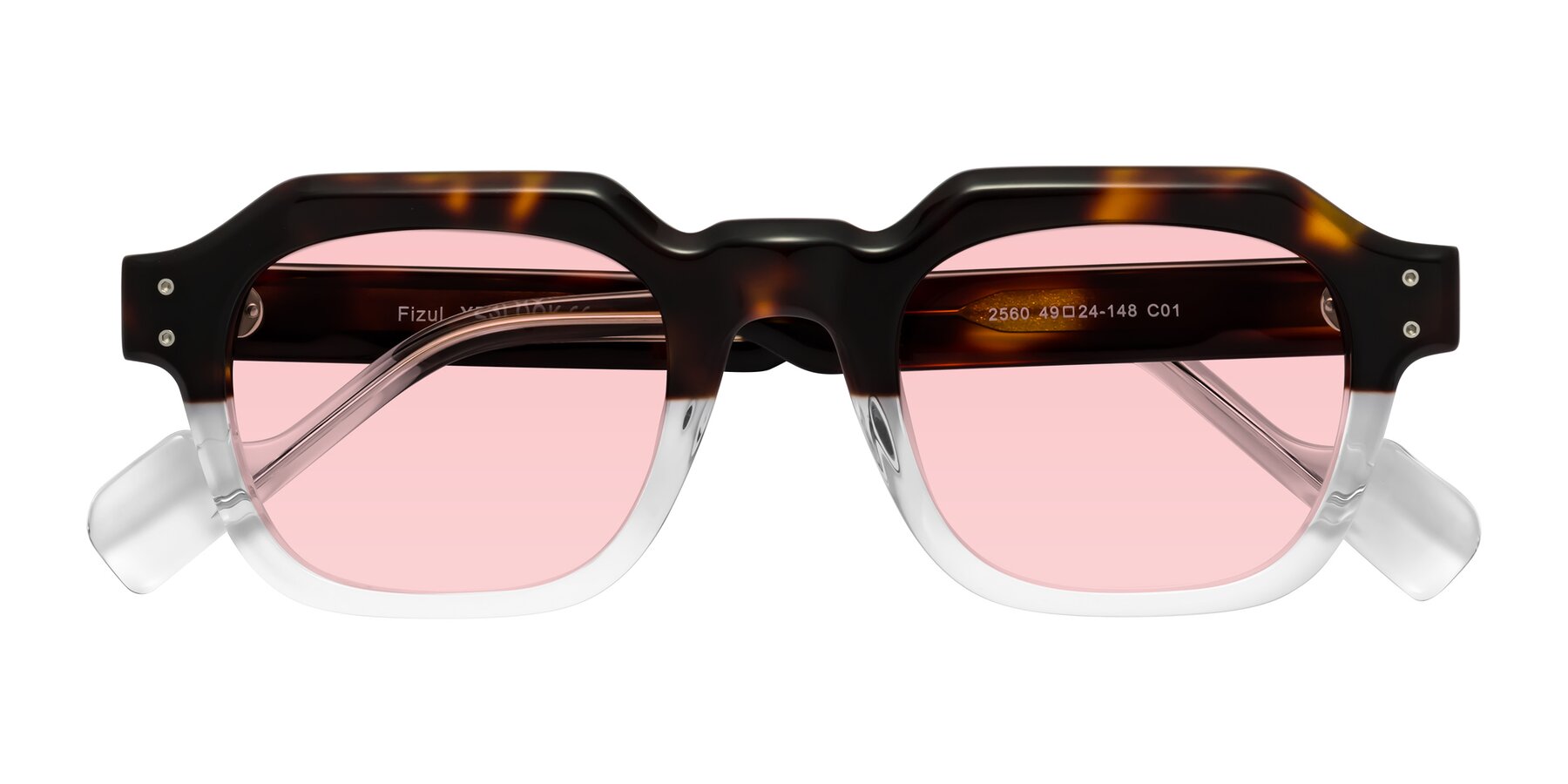 Tortoise/Clear Retro-Vintage Geometric Full-Rim Tinted Sunglasses with Light Garnet Sunwear Lenses