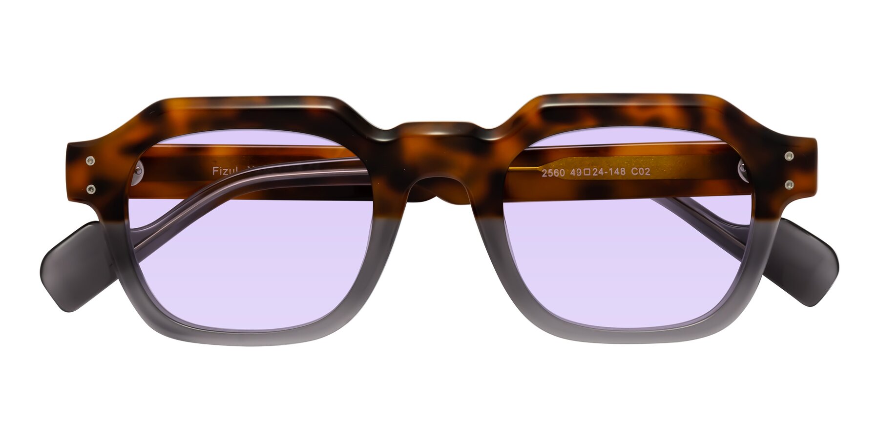 Tortoise/Translucent Gray Retro-Vintage Geometric Full-Rim Tinted Sunglasses with Light Purple Sunwear Lenses