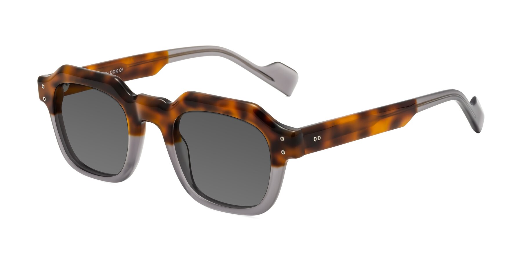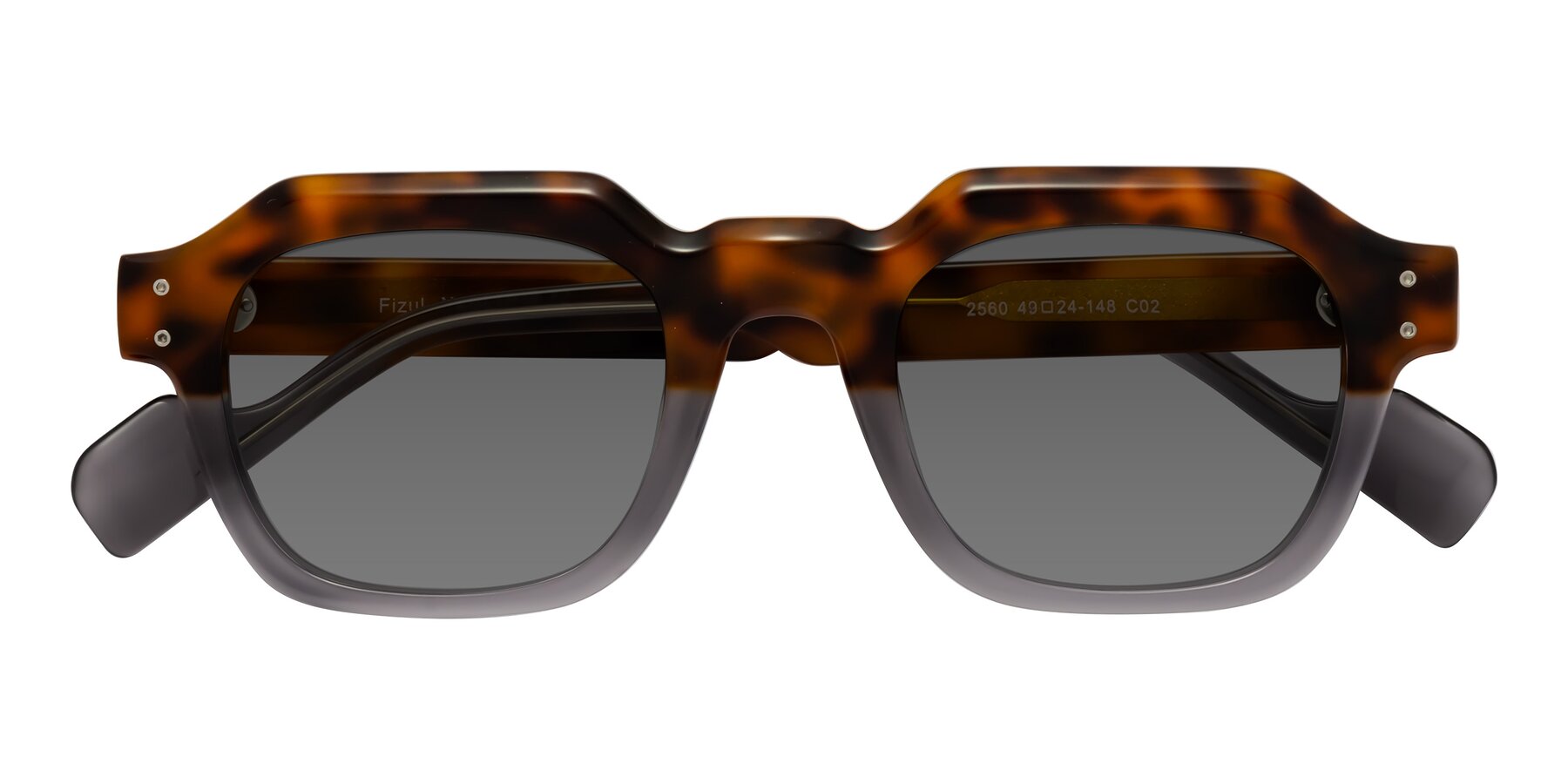 Tortoise/Translucent Gray Retro-Vintage Geometric Full-Rim Tinted Sunglasses with Medium Gray Sunwear Lenses