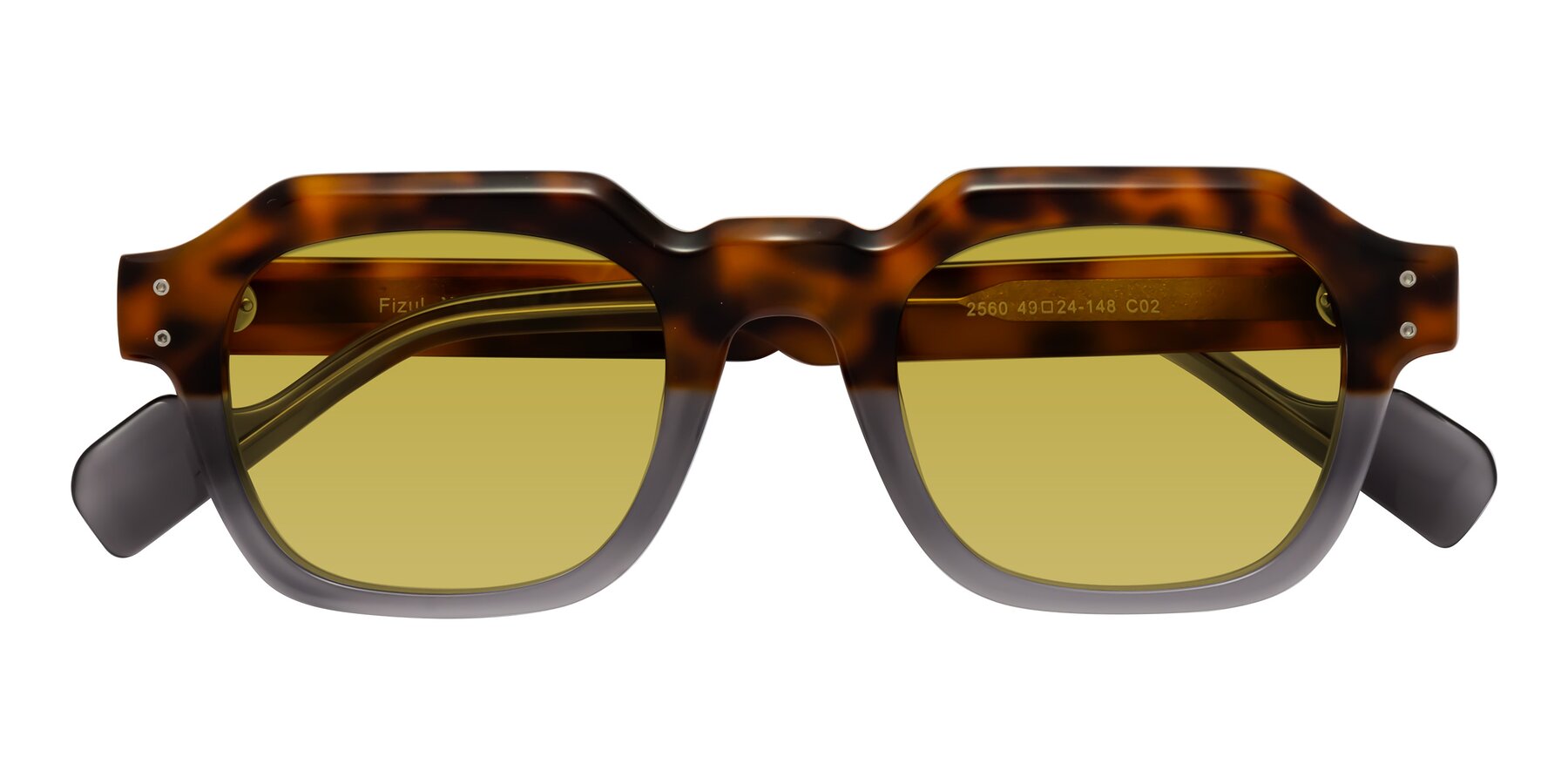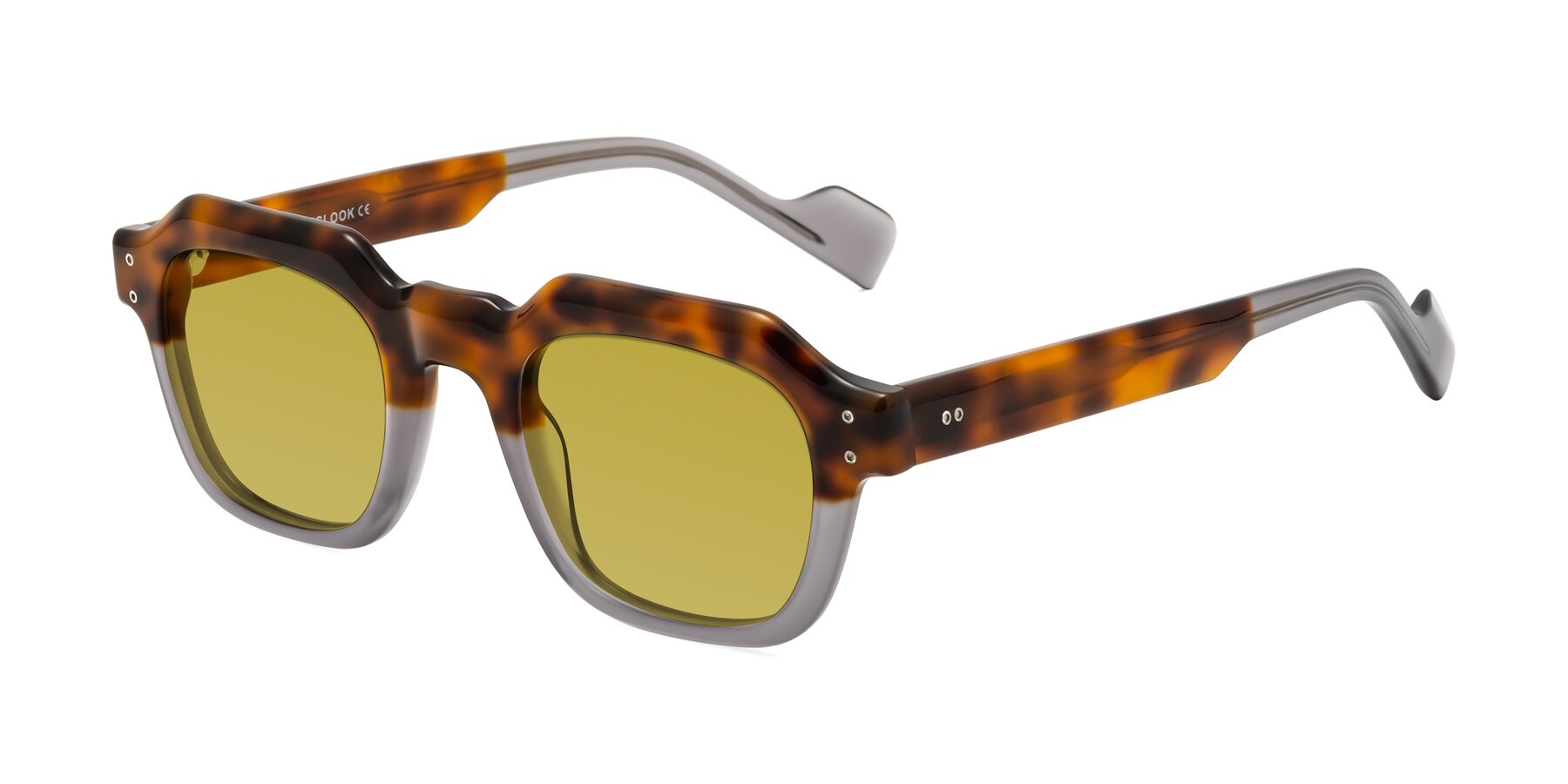 Tortoise/Translucent Gray Retro-Vintage Geometric Full-Rim Tinted Sunglasses with Champagne Sunwear Lenses