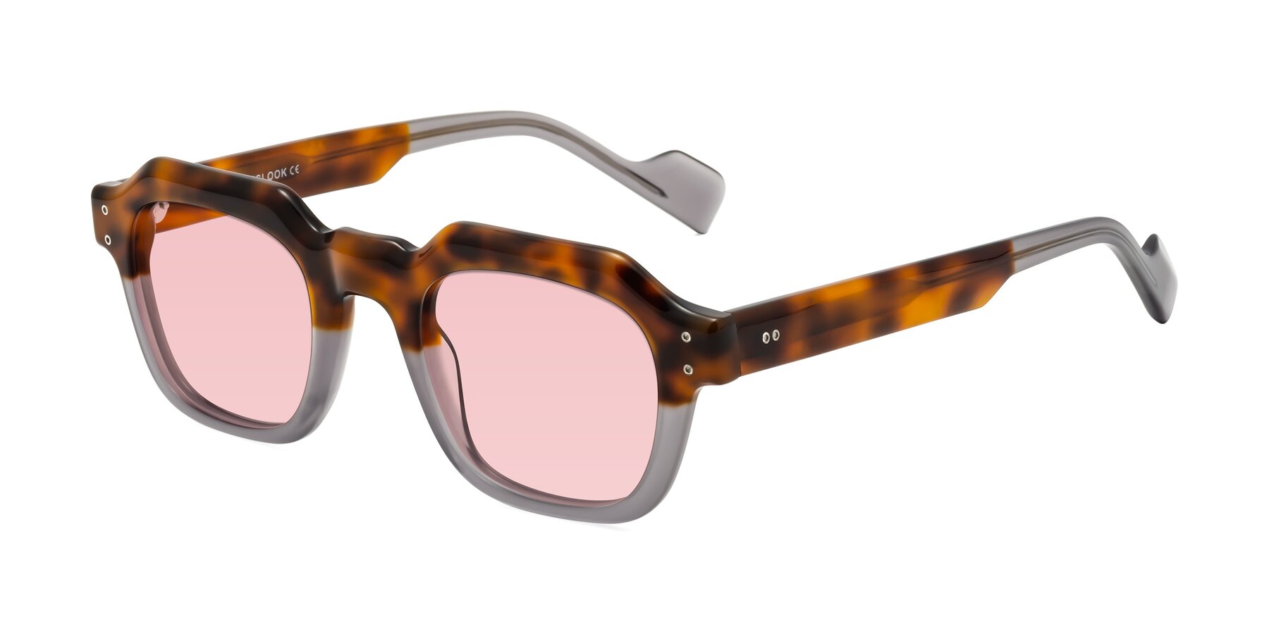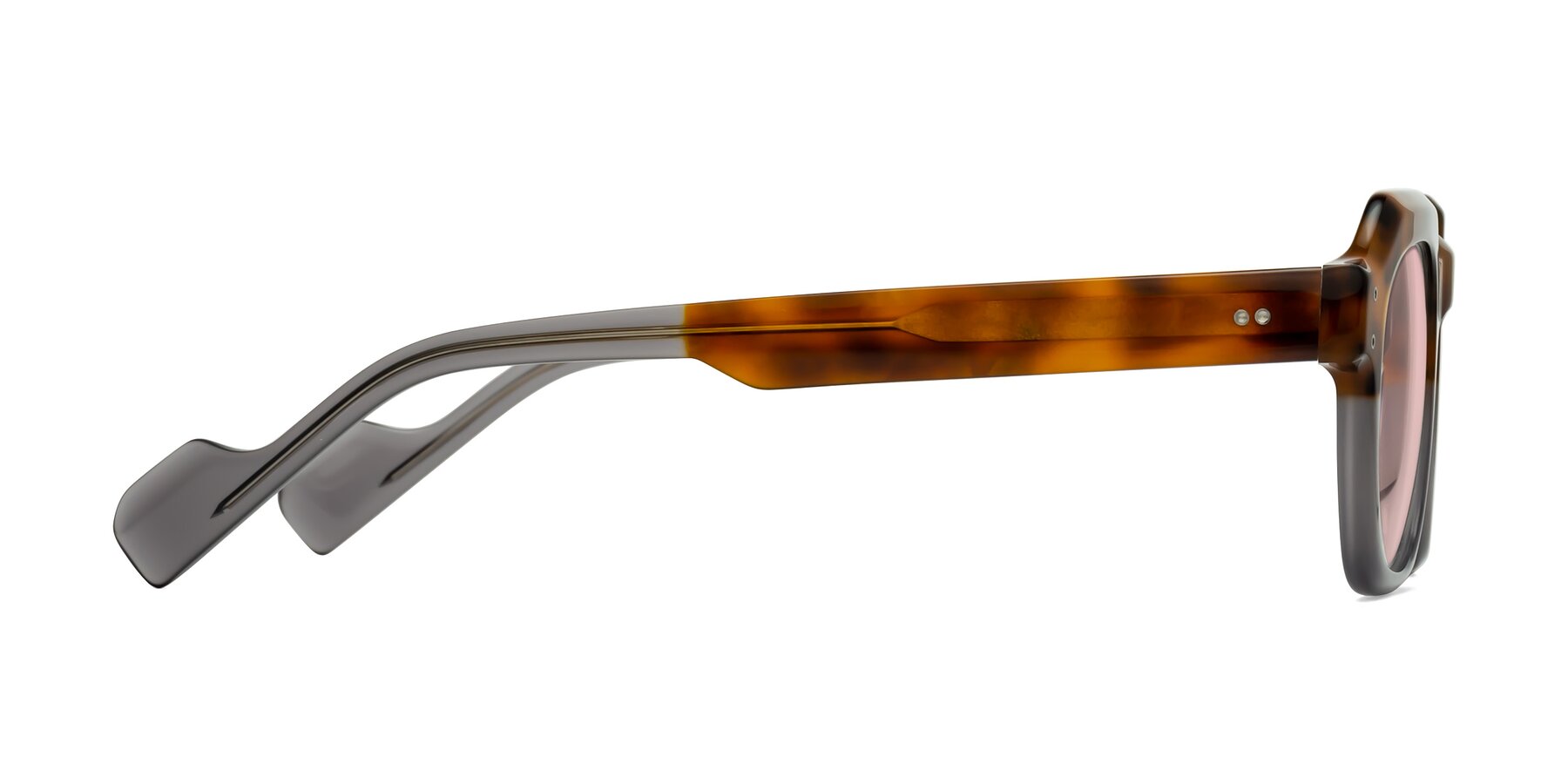 Tortoise/Translucent Gray Retro-Vintage Geometric Full-Rim Tinted Sunglasses with Light Garnet Sunwear Lenses