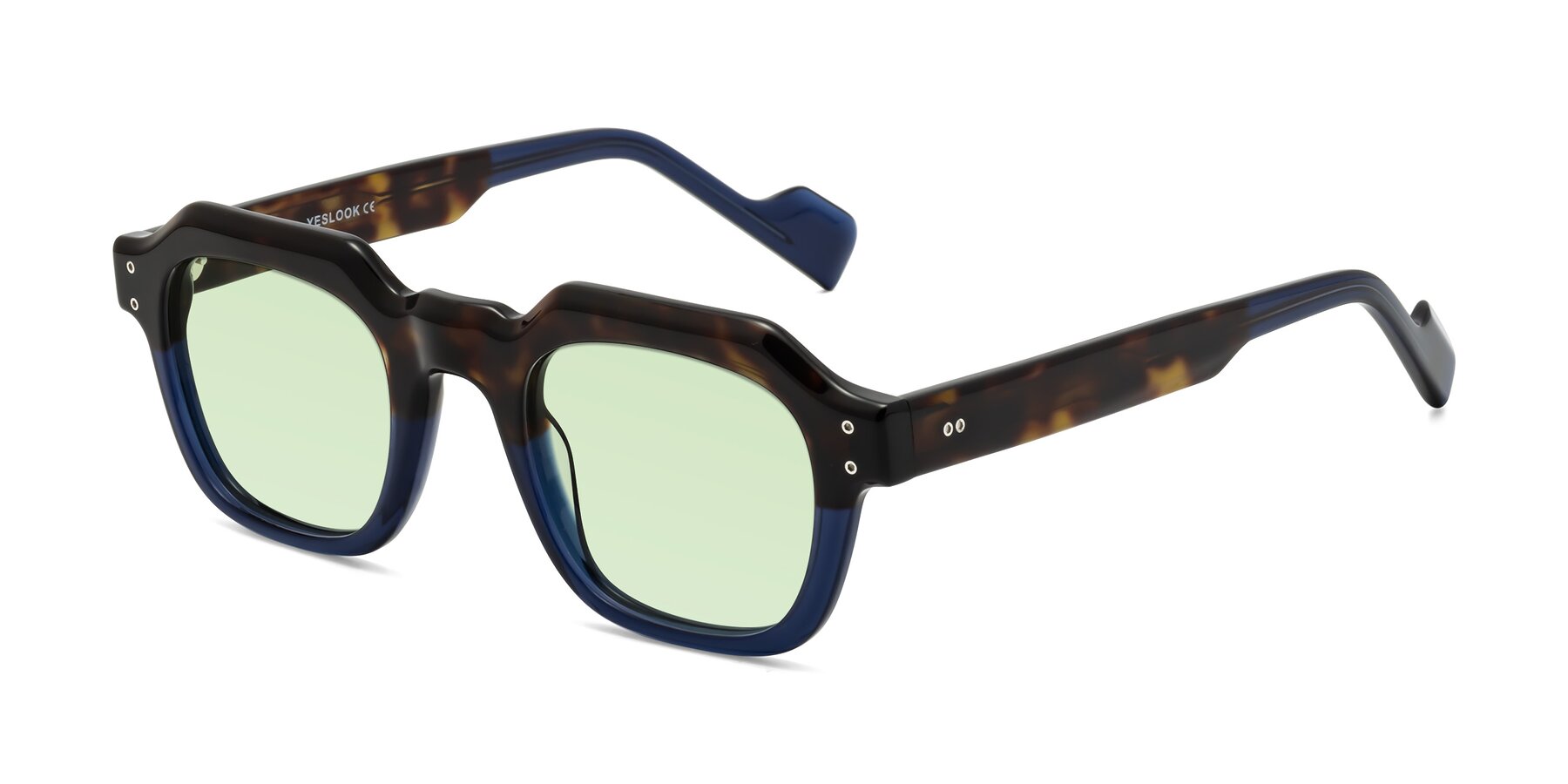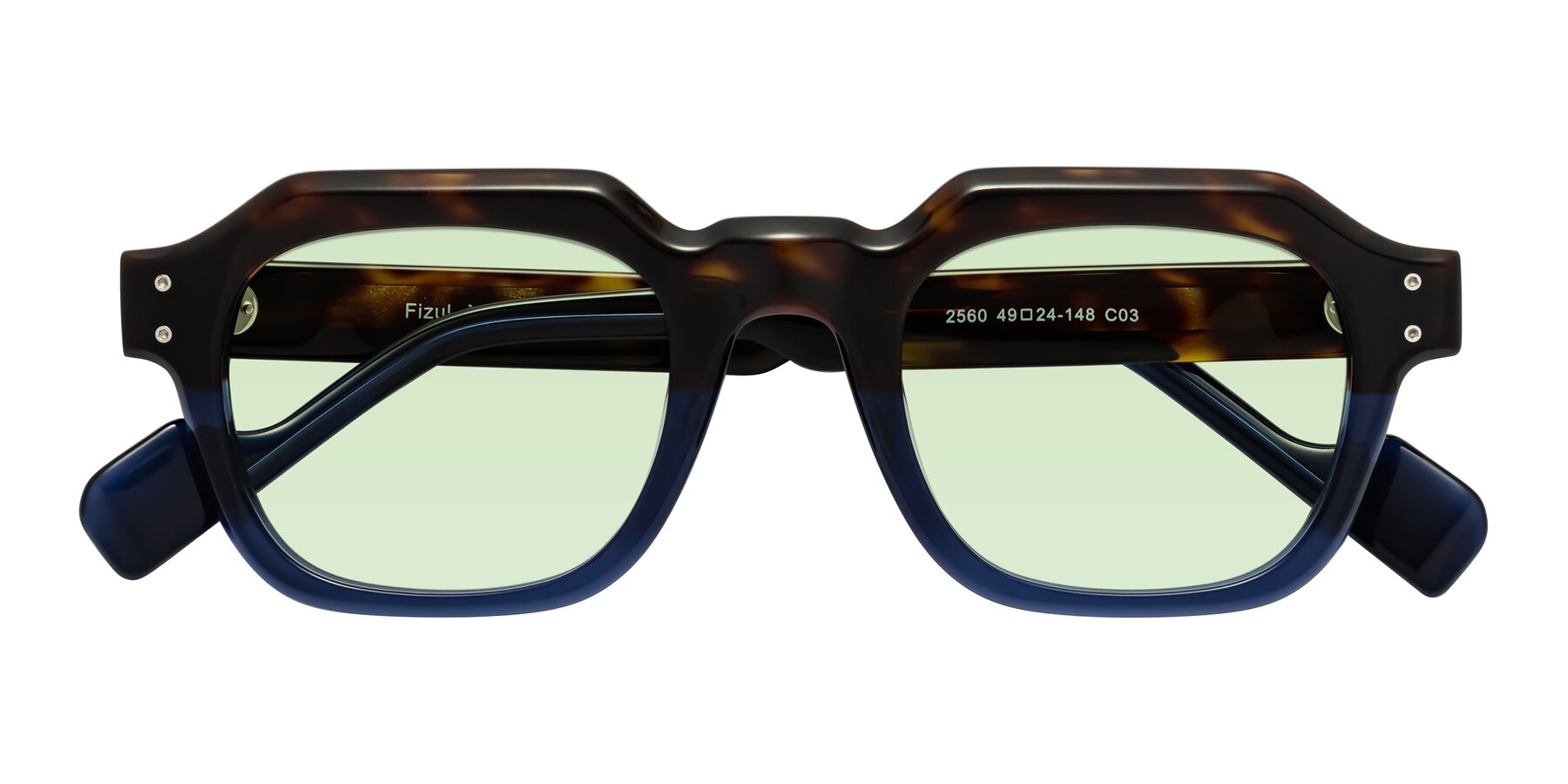 Tortoise/Translucent Blue Retro-Vintage Geometric Full-Rim Tinted Sunglasses with Light Green Sunwear Lenses
