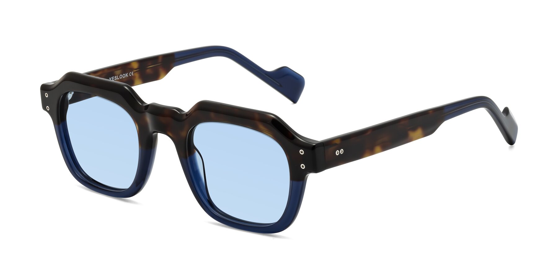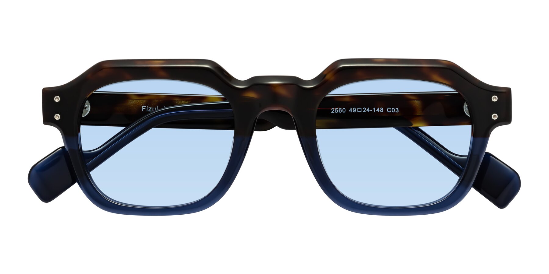 Tortoise/Translucent Blue Retro-Vintage Geometric Full-Rim Tinted Sunglasses with Light Blue Sunwear Lenses