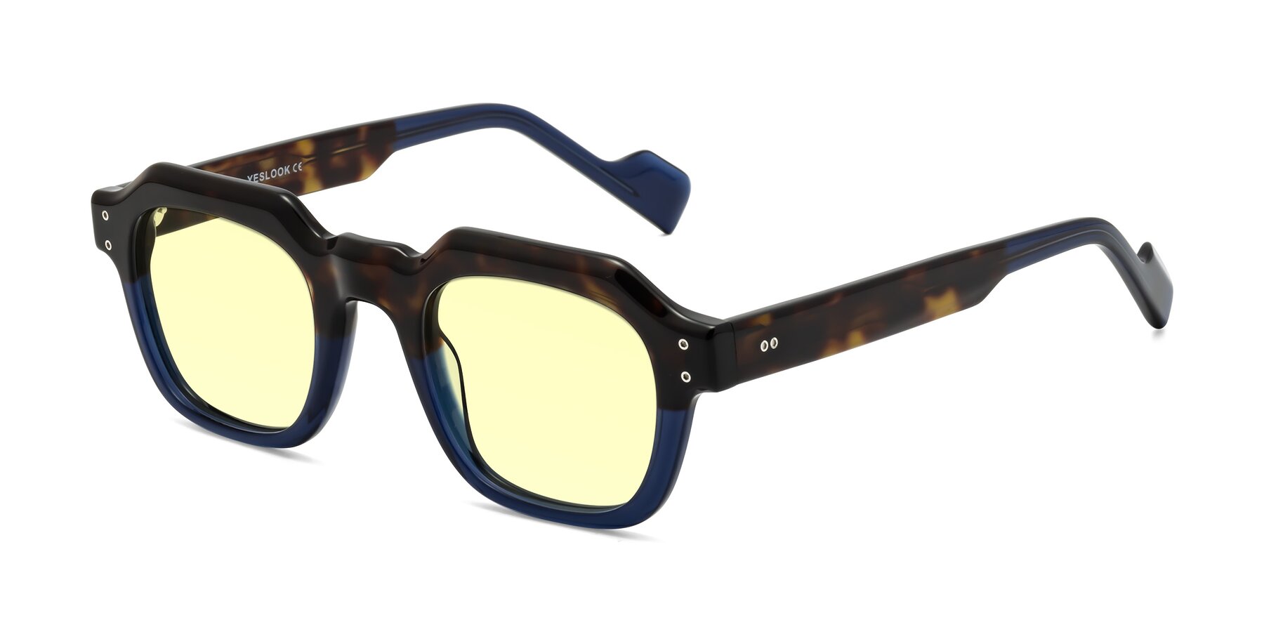 Tortoise/Translucent Blue Retro-Vintage Geometric Full-Rim Tinted Sunglasses with Light Yellow Sunwear Lenses
