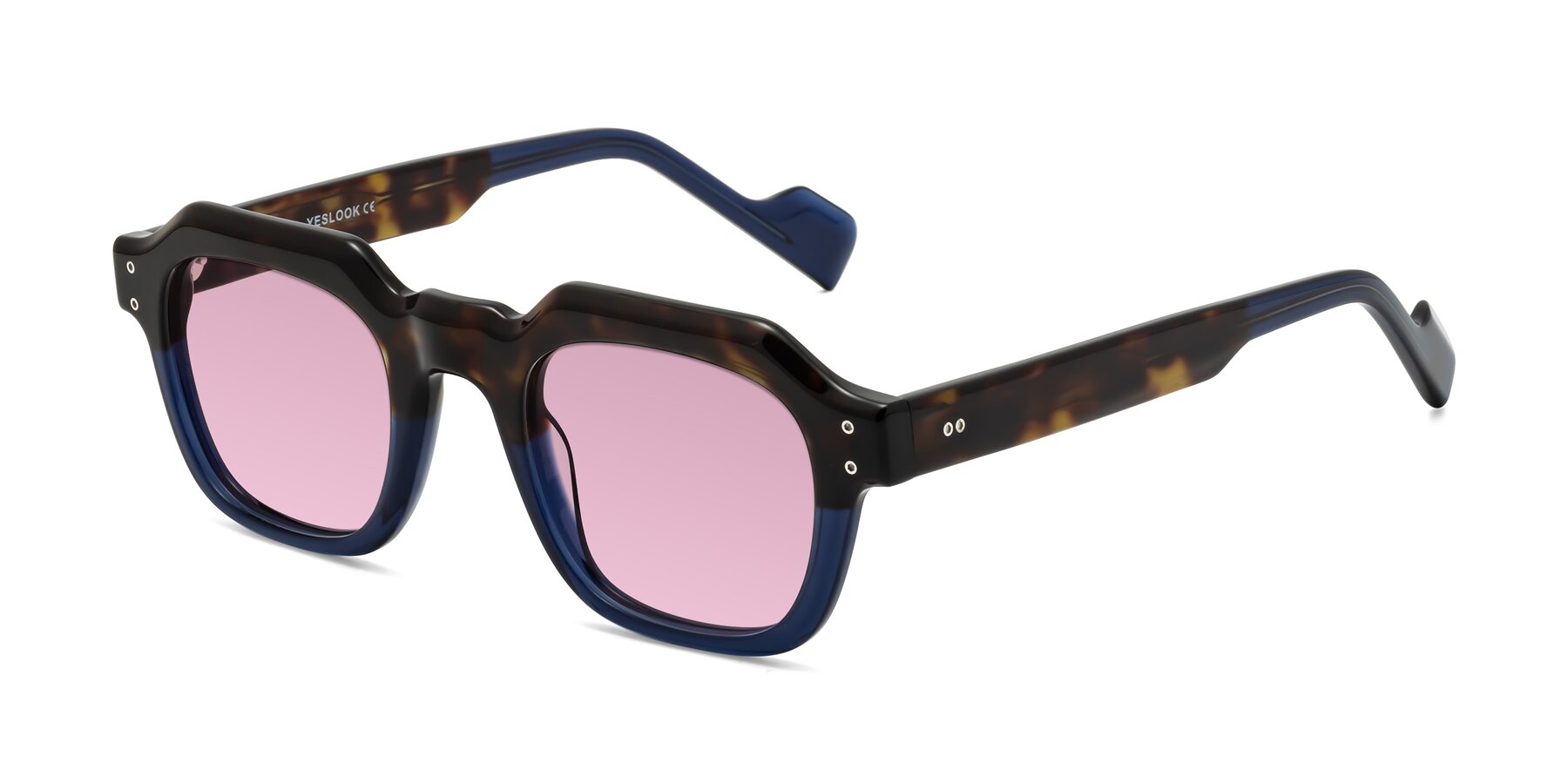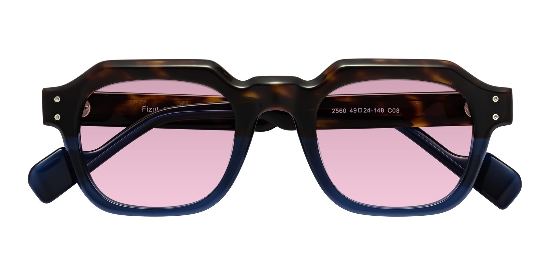 Tortoise/Translucent Blue Retro-Vintage Geometric Full-Rim Tinted Sunglasses with Light Wine Sunwear Lenses