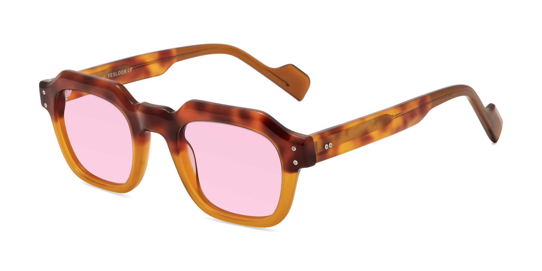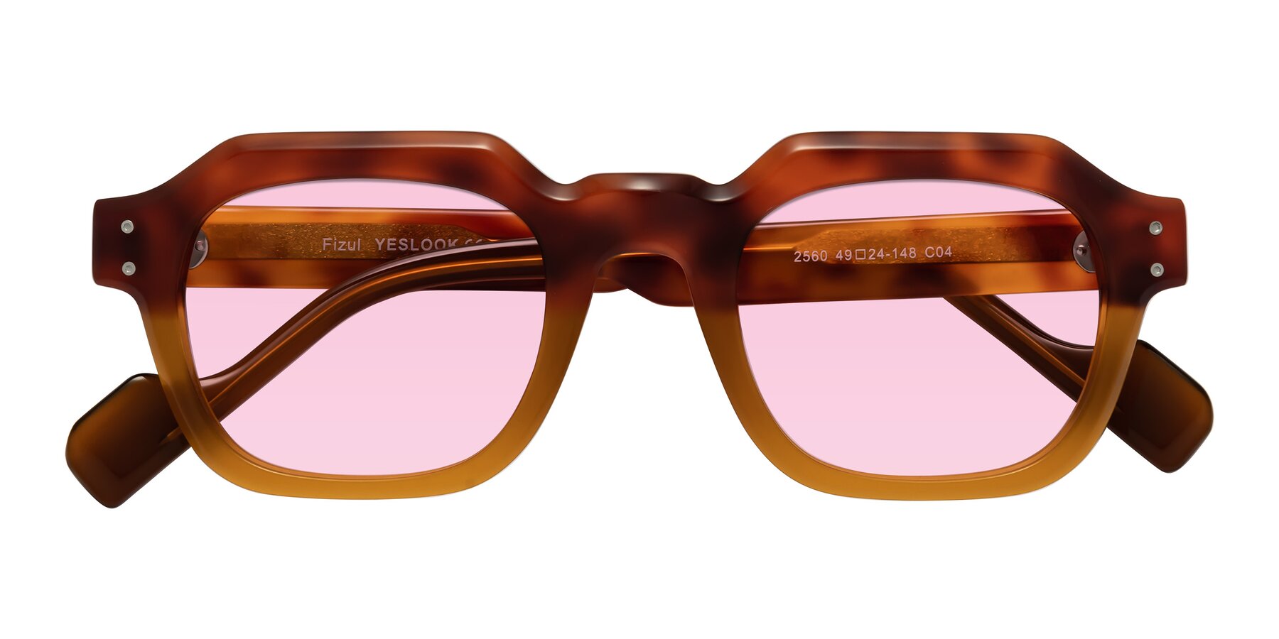 Tortoise/Pumpkin Retro-Vintage Geometric Full-Rim Tinted Sunglasses with Light Pink Sunwear Lenses