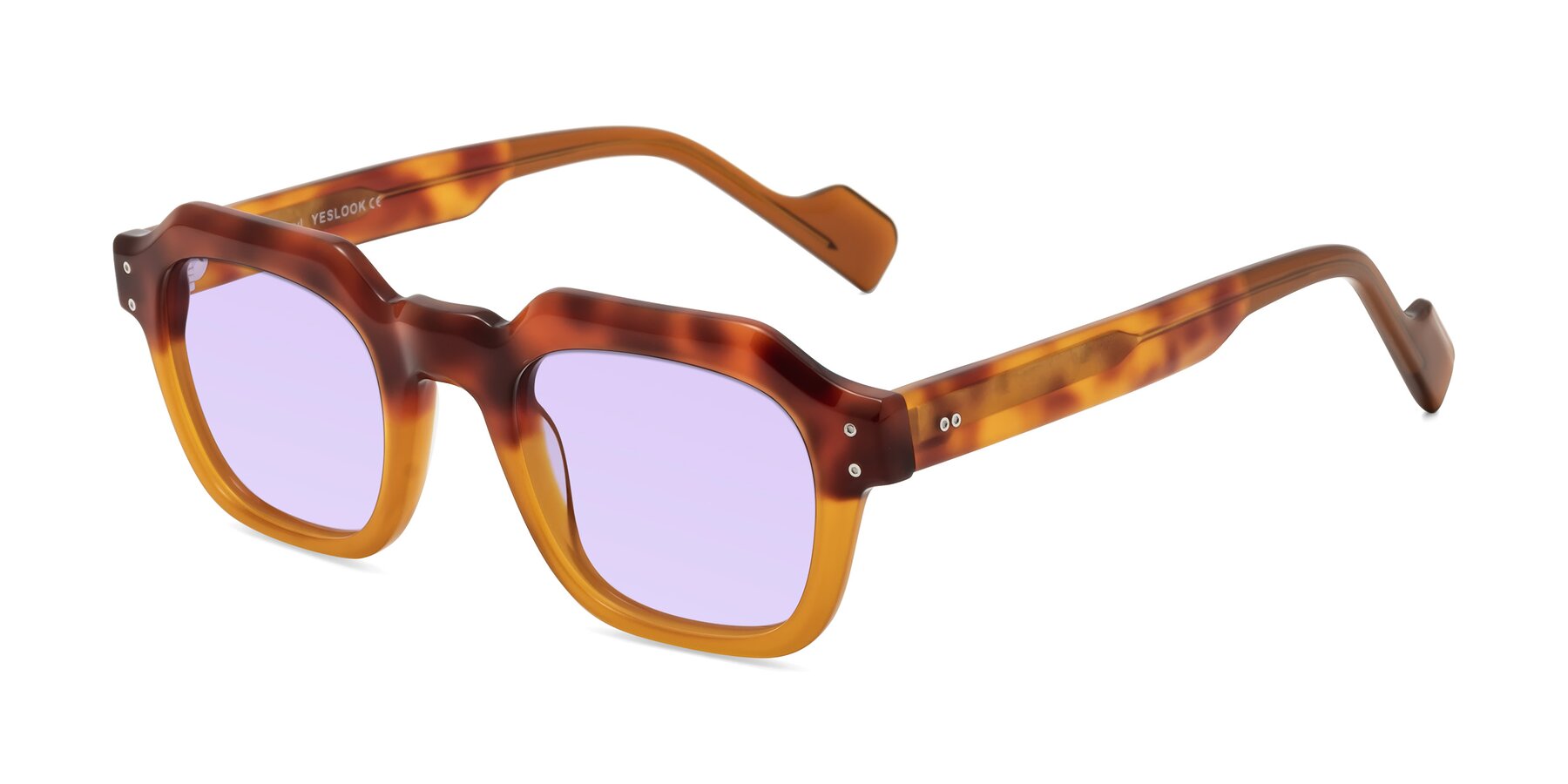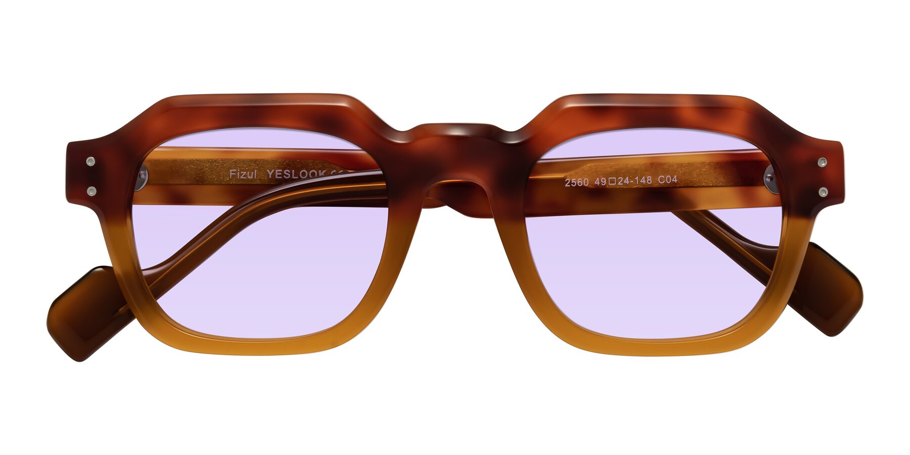 Tortoise/Pumpkin Retro-Vintage Geometric Full-Rim Tinted Sunglasses with Light Purple Sunwear Lenses