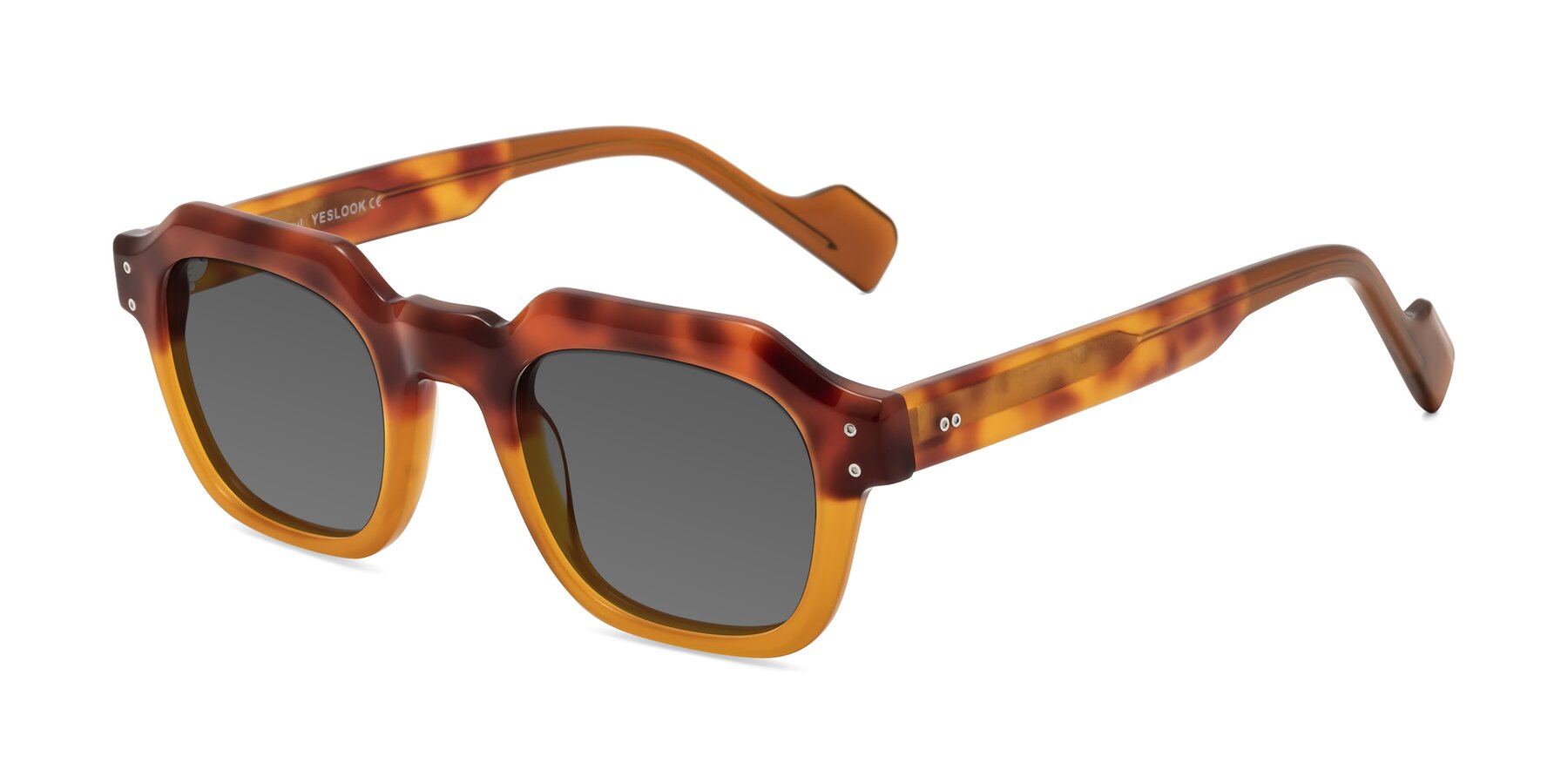 Tortoise/Pumpkin Retro-Vintage Geometric Full-Rim Tinted Sunglasses with Medium Gray Sunwear Lenses