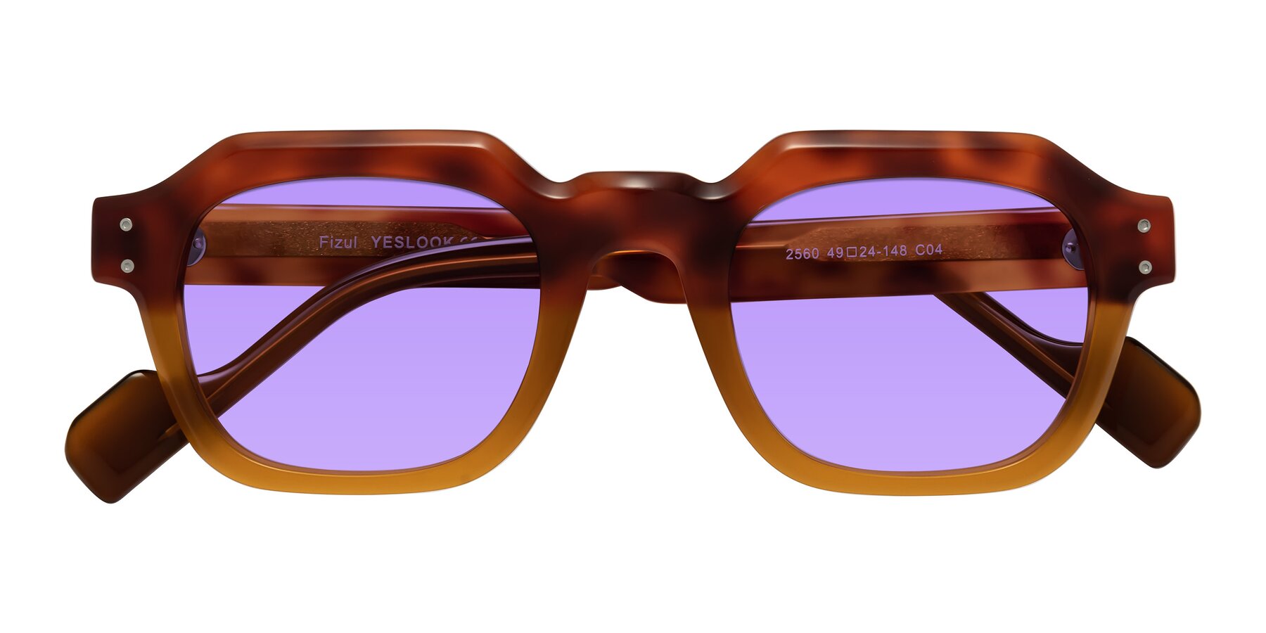 Tortoise/Pumpkin Retro-Vintage Geometric Full-Rim Tinted Sunglasses with Medium Purple Sunwear Lenses