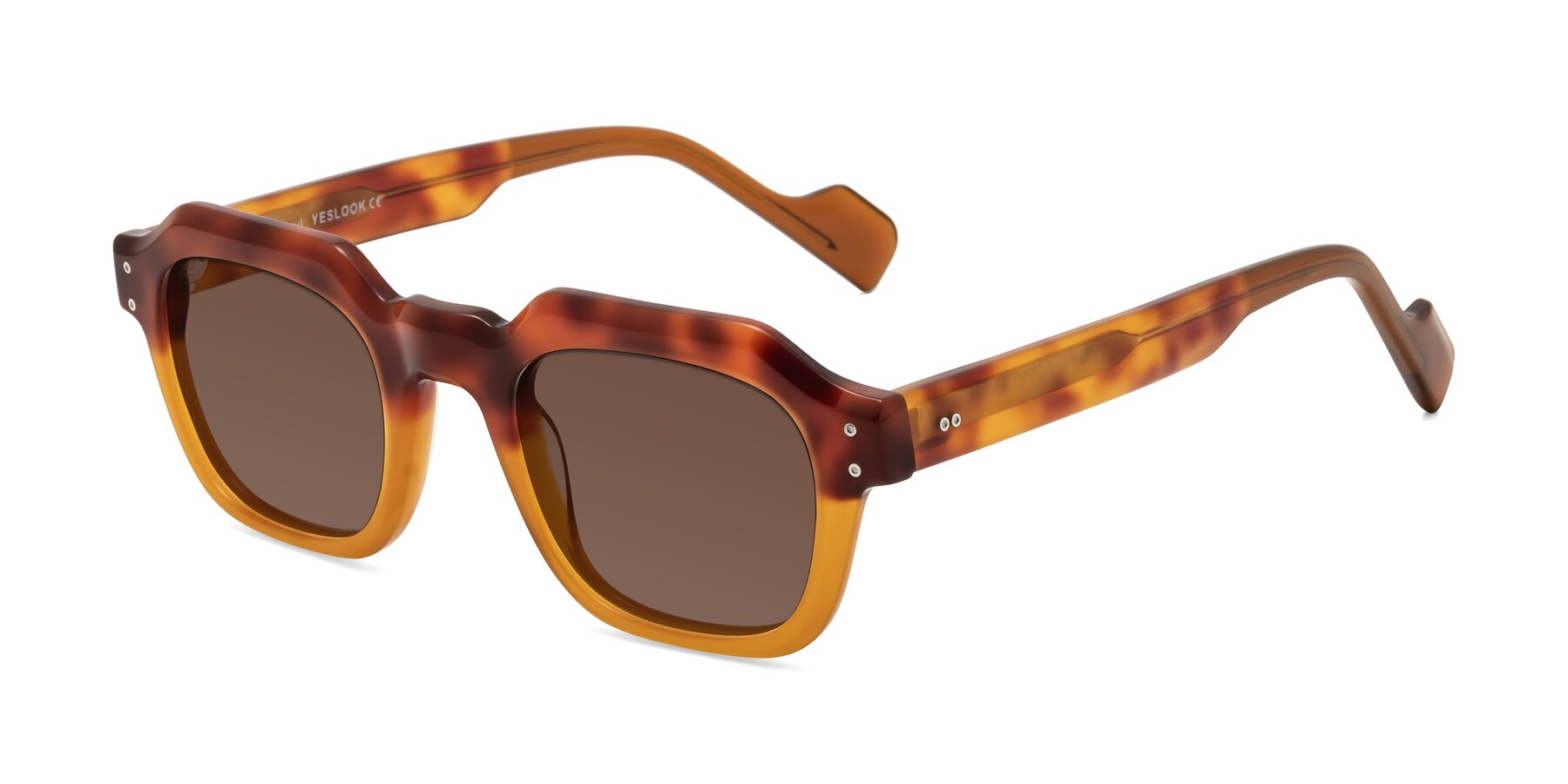 Tortoise/Pumpkin Retro-Vintage Geometric Full-Rim Tinted Sunglasses with Brown Sunwear Lenses