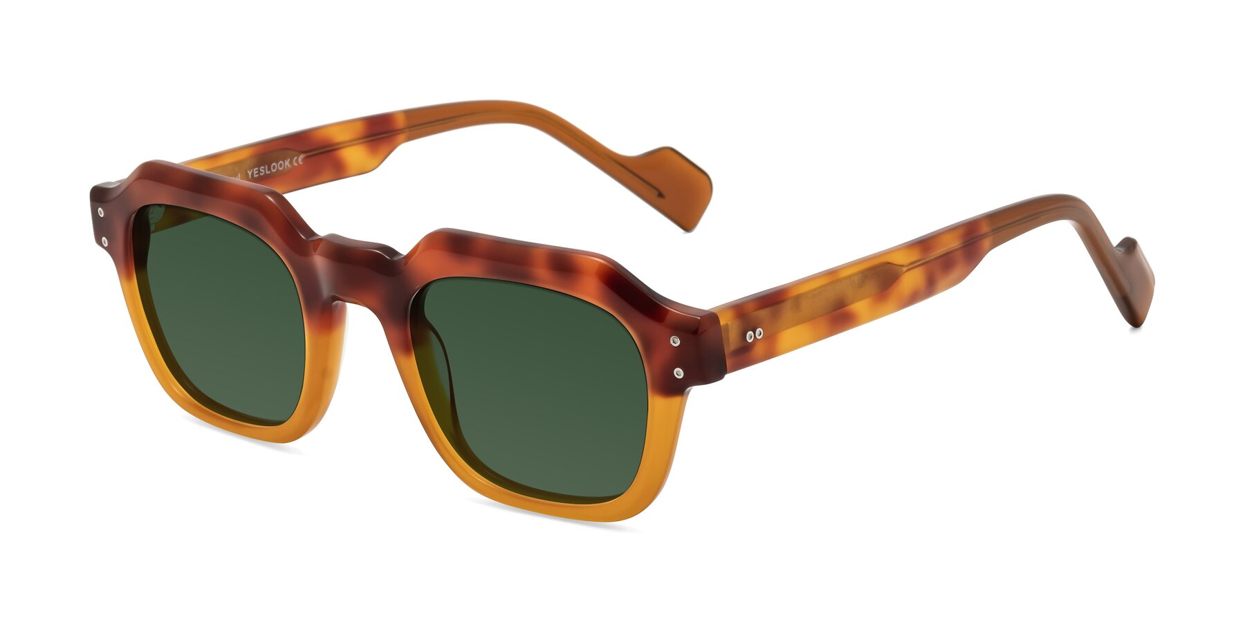 Tortoise/Pumpkin Retro-Vintage Geometric Full-Rim Tinted Sunglasses with Green Sunwear Lenses