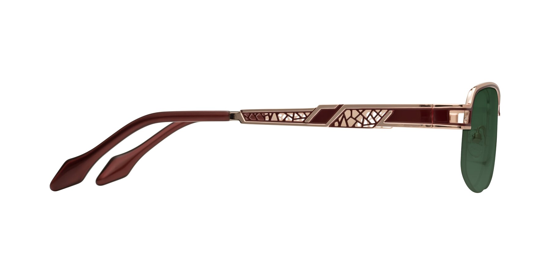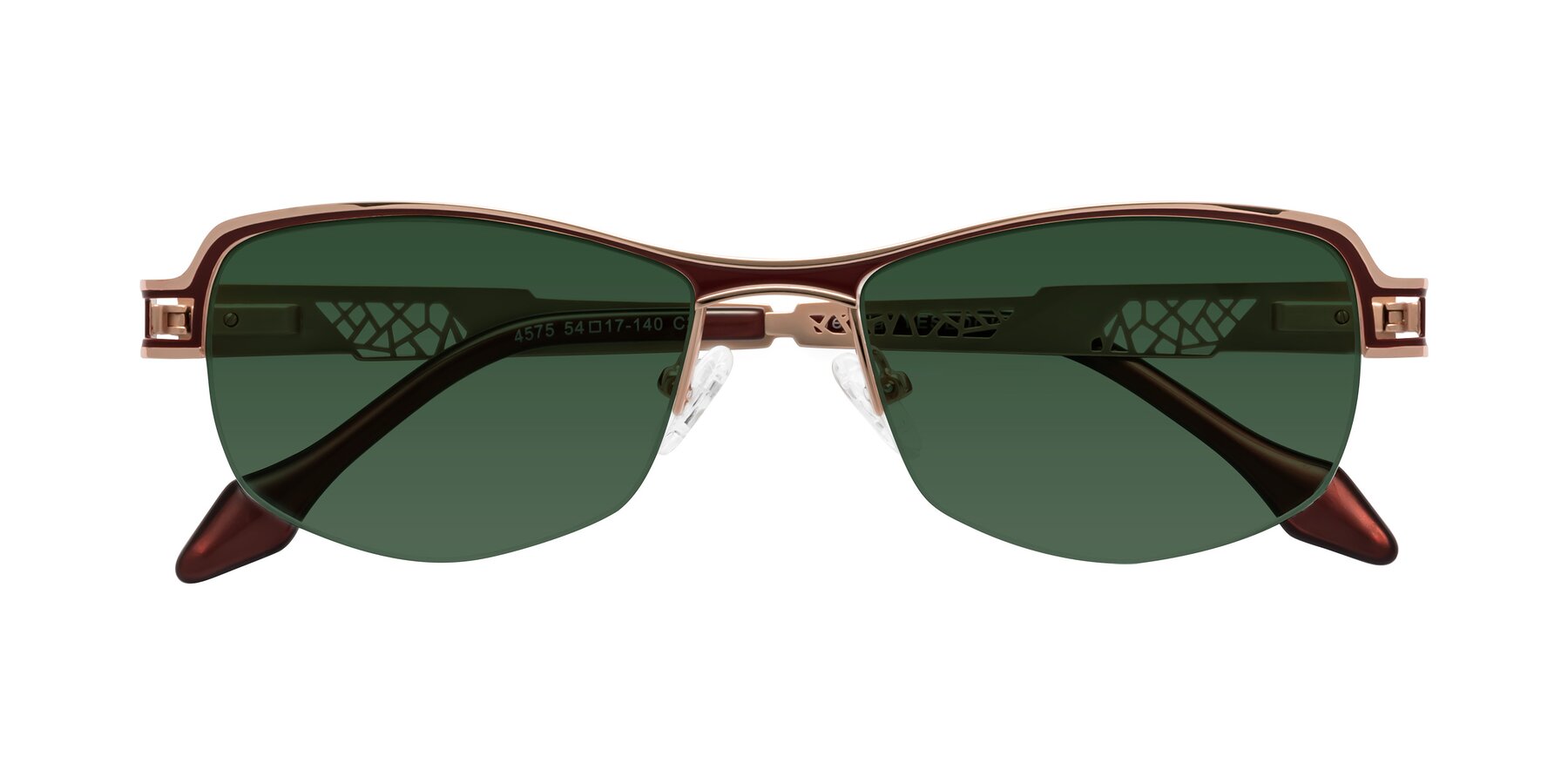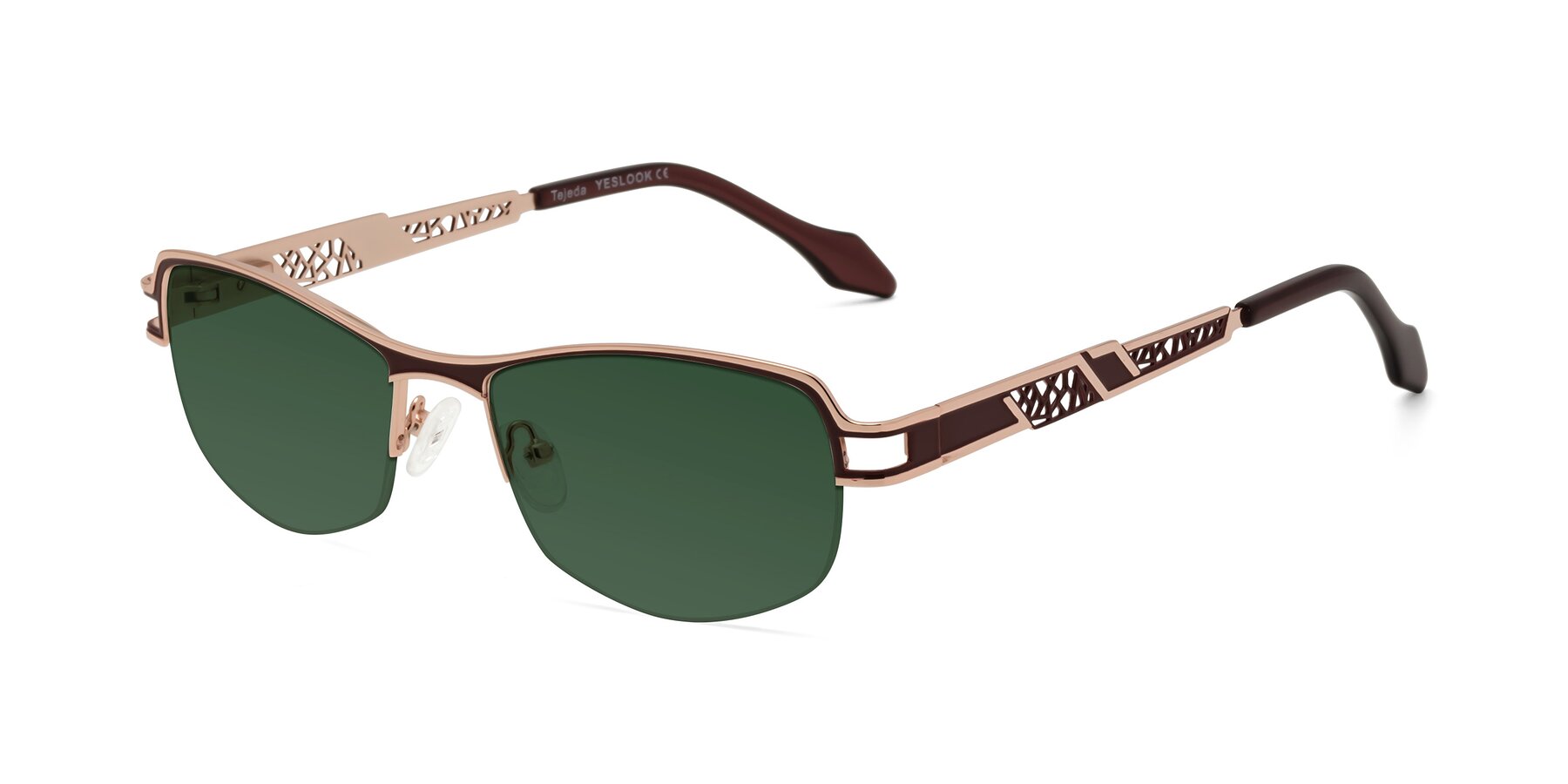 Rose Gold/Red Metal Geometric Semi-Rimless Tinted Sunglasses with Green Sunwear Lenses