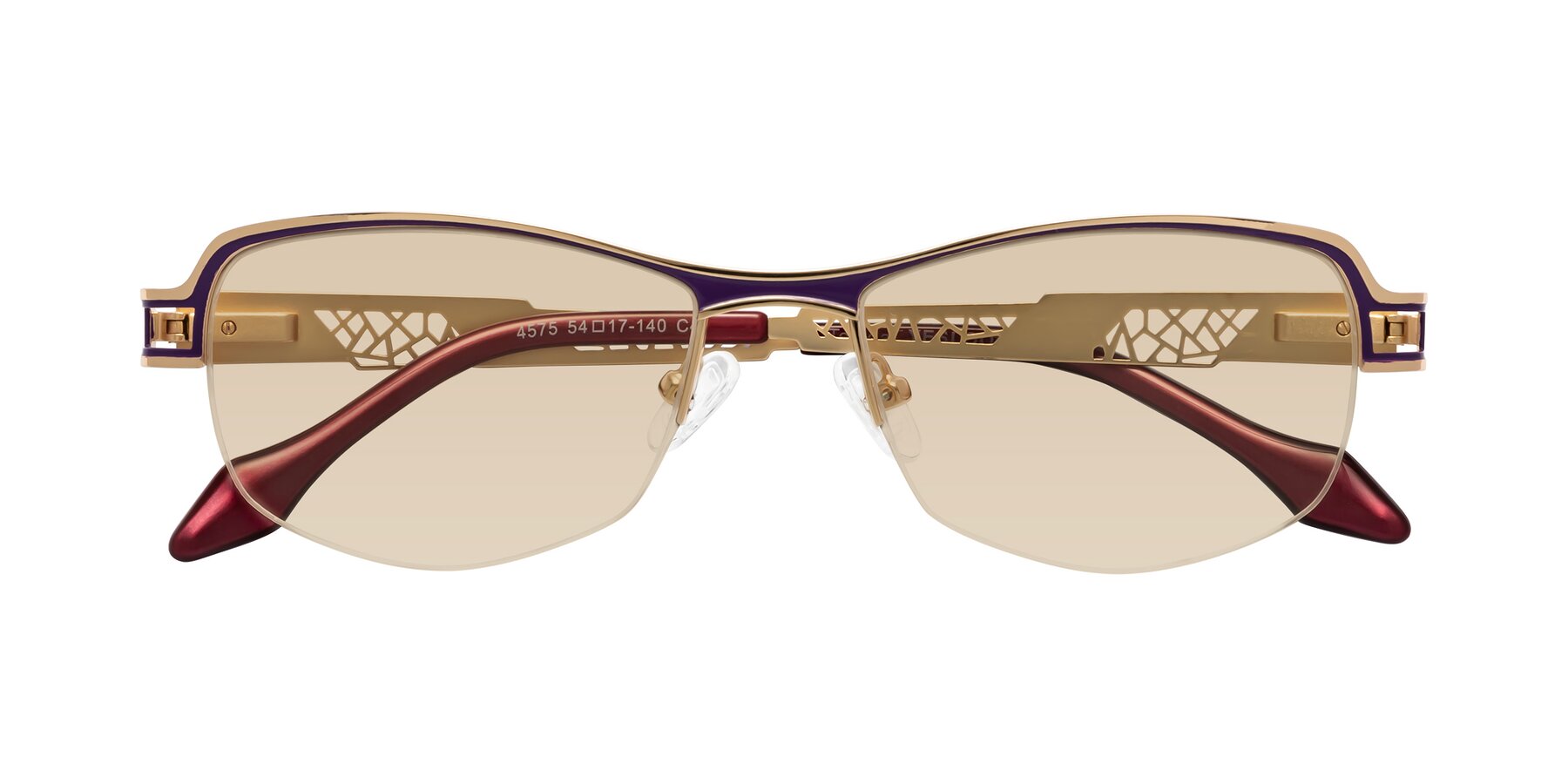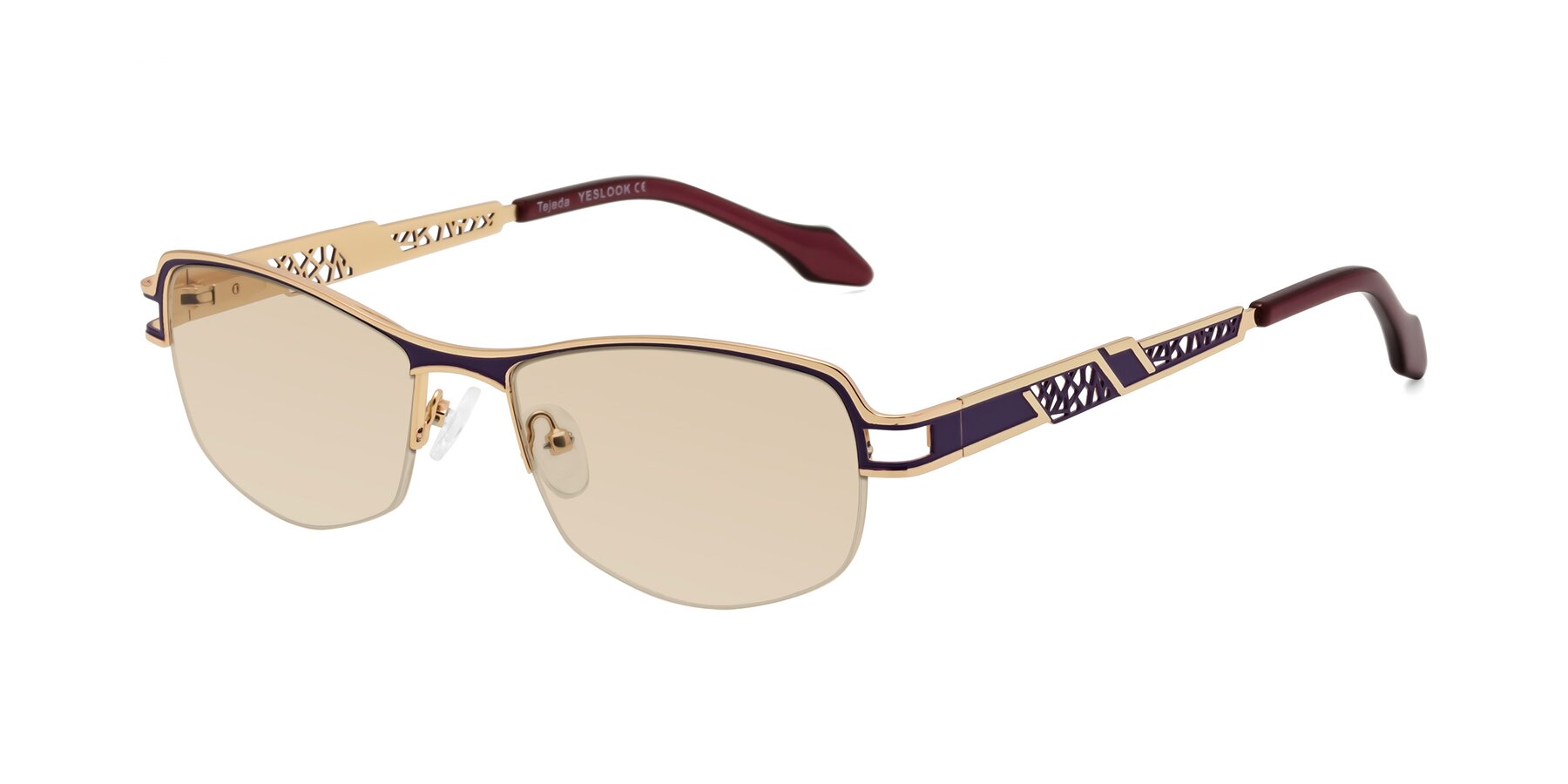 Gold/Purple Metal Geometric Semi-Rimless Tinted Sunglasses with Light Brown Sunwear Lenses