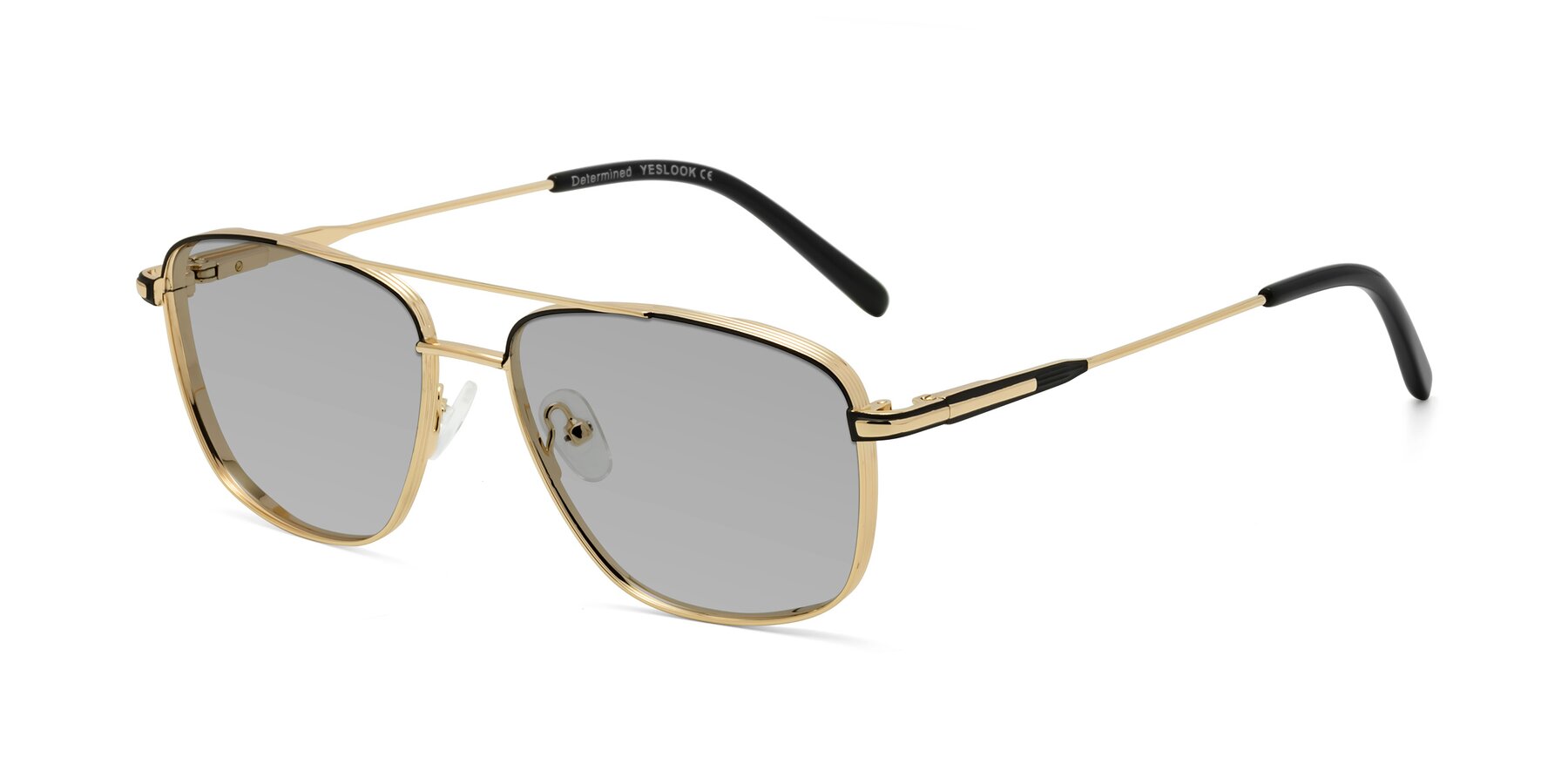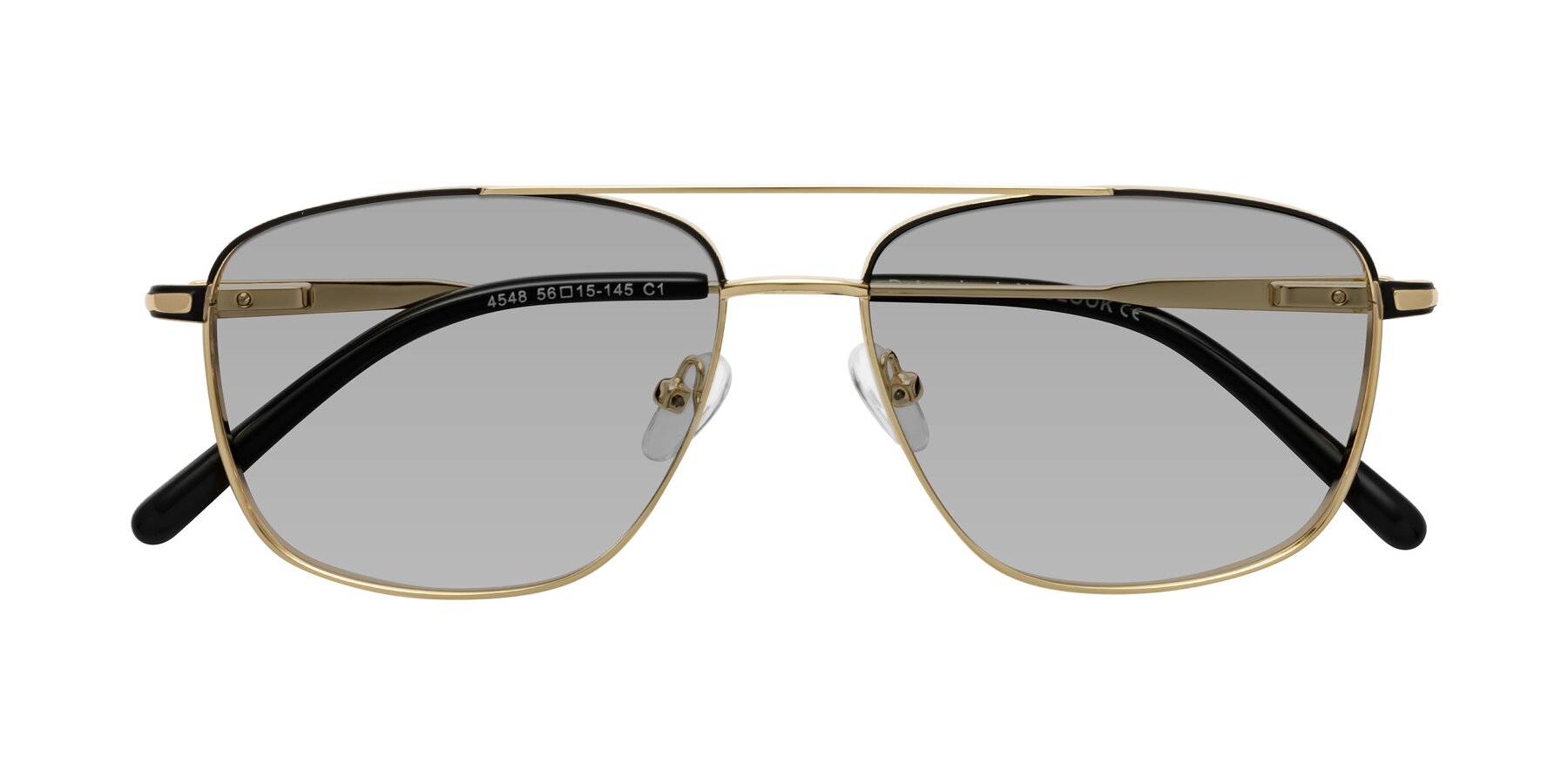 Gold/Black Grandpa Double Bridge Metal Tinted Sunglasses with Light Gray Sunwear Lenses