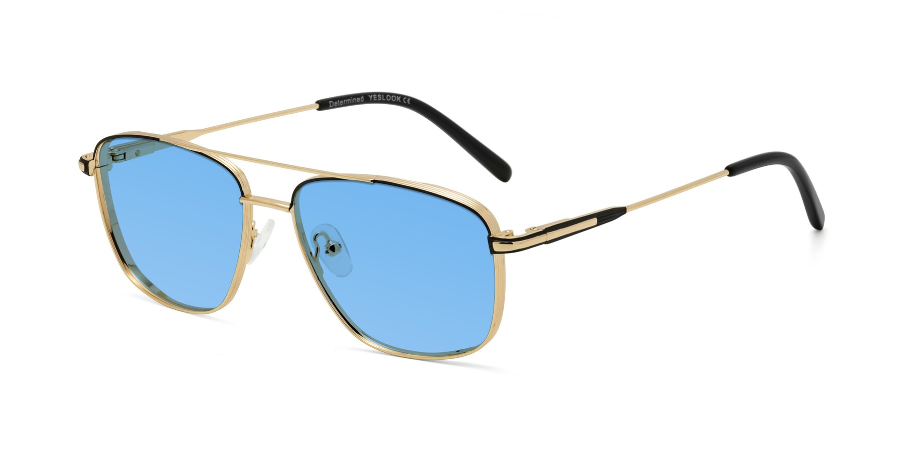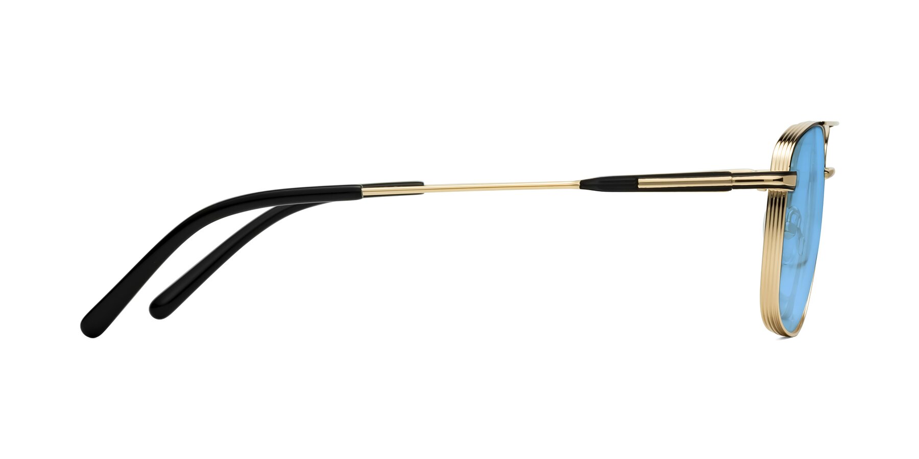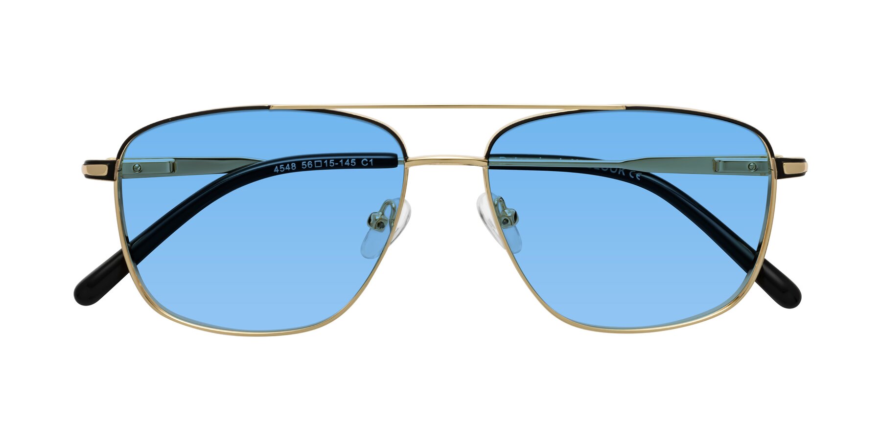 Gold/Black Grandpa Double Bridge Metal Tinted Sunglasses with Medium Blue Sunwear Lenses