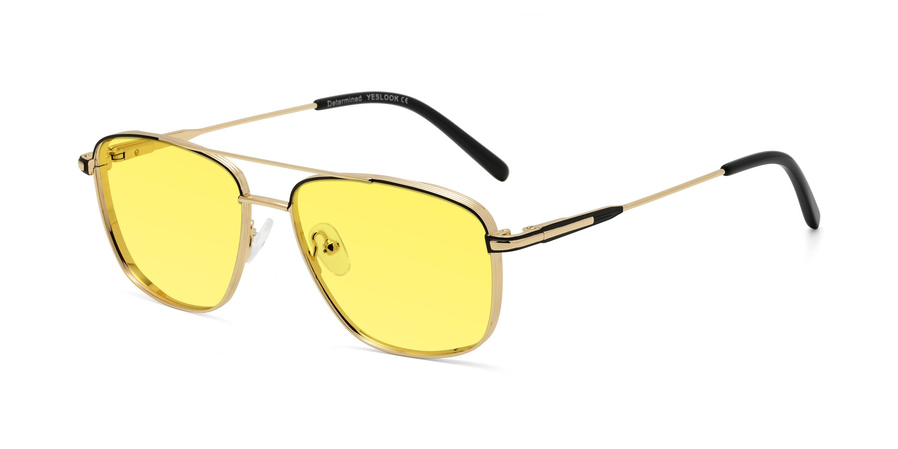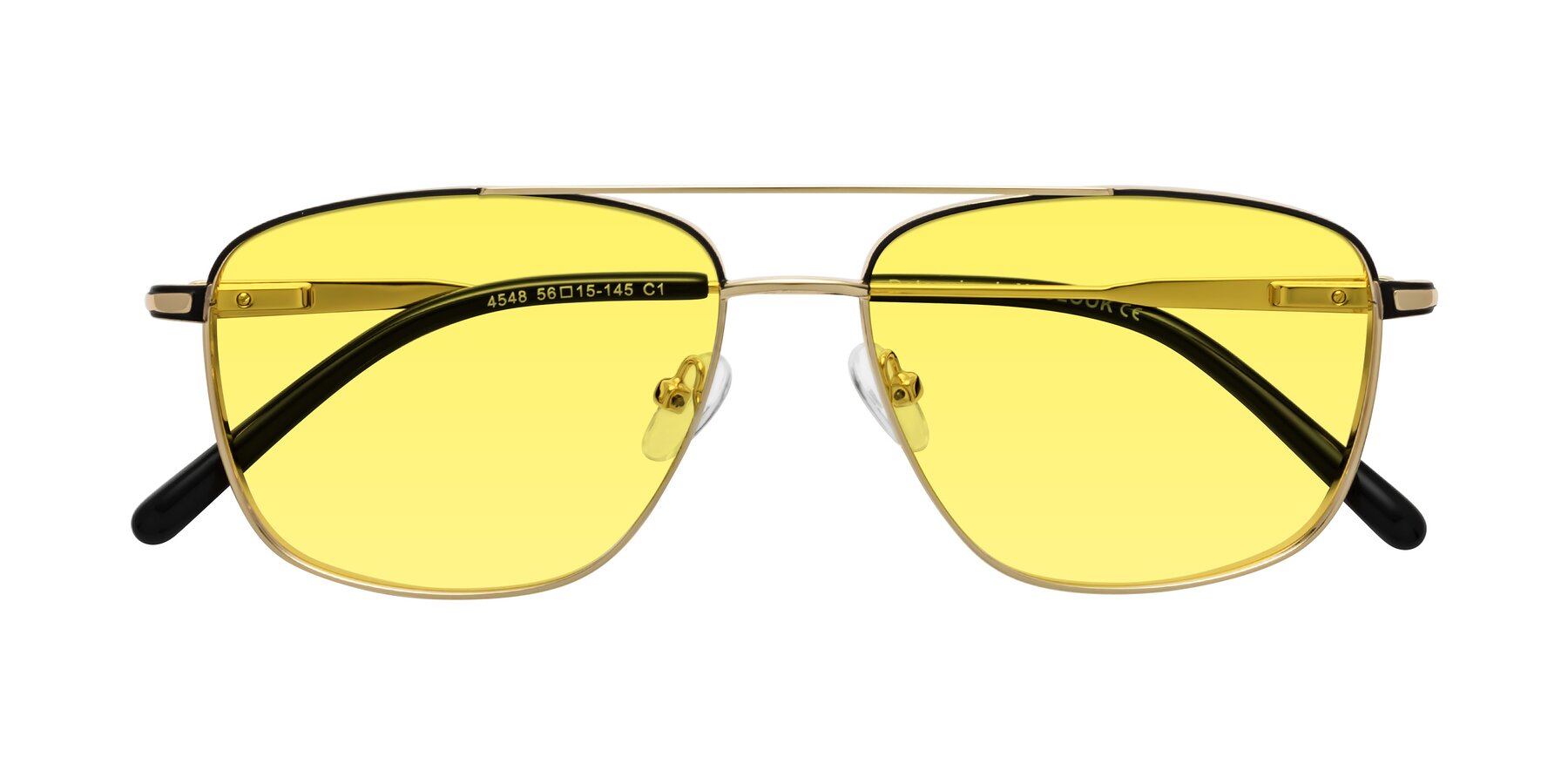 Gold/Black Grandpa Double Bridge Metal Tinted Sunglasses with Medium Yellow Sunwear Lenses