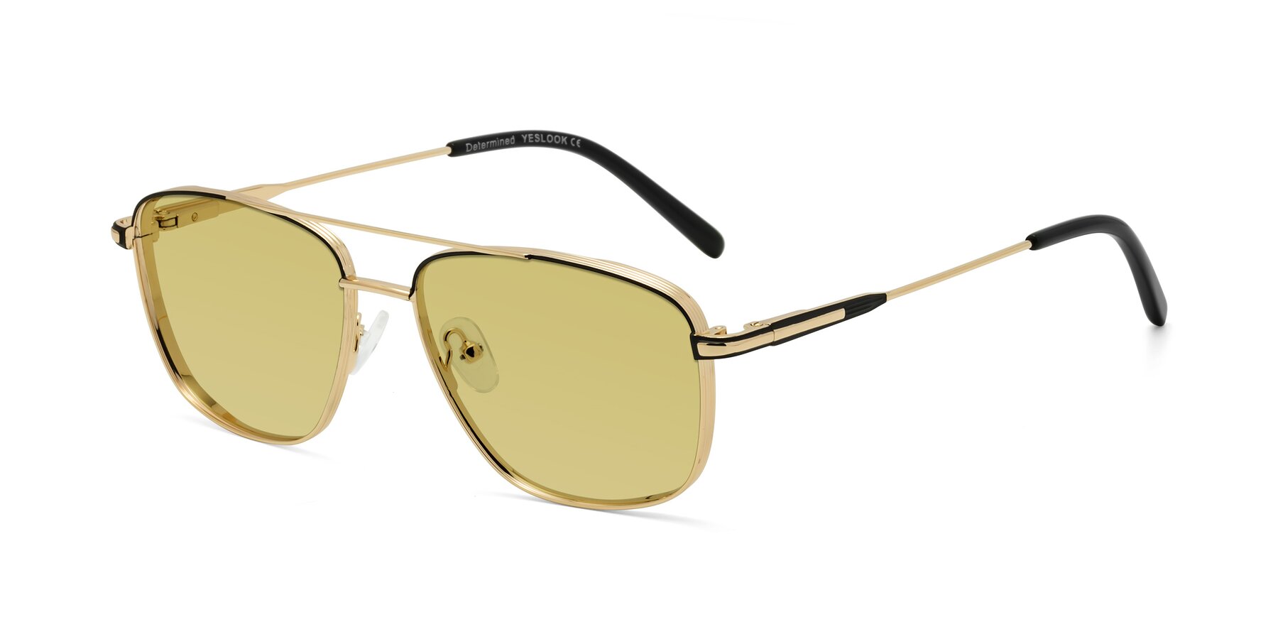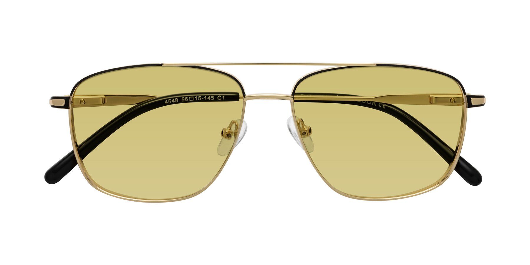 Gold/Black Grandpa Double Bridge Metal Tinted Sunglasses with Medium Champagne Sunwear Lenses