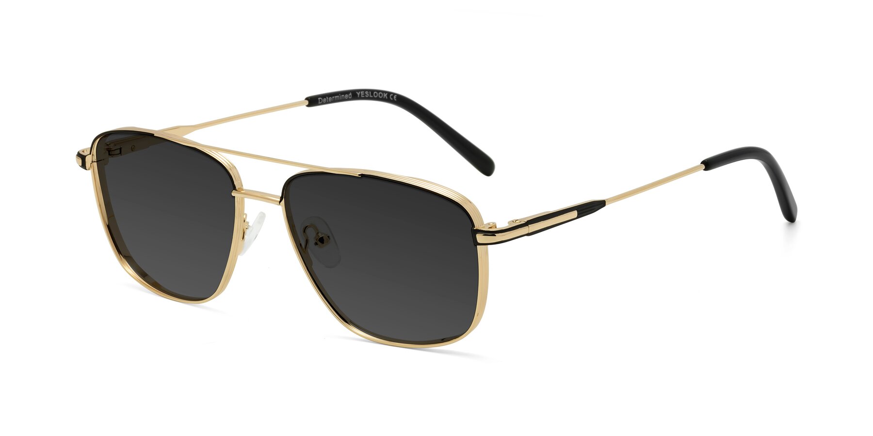 Gold/Black Grandpa Double Bridge Metal Tinted Sunglasses with Gray Sunwear Lenses