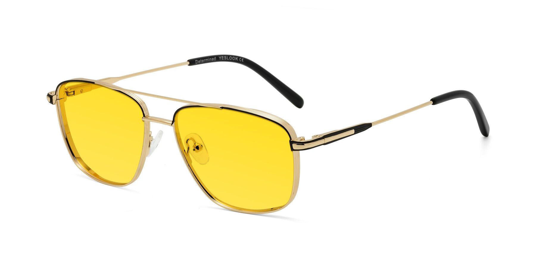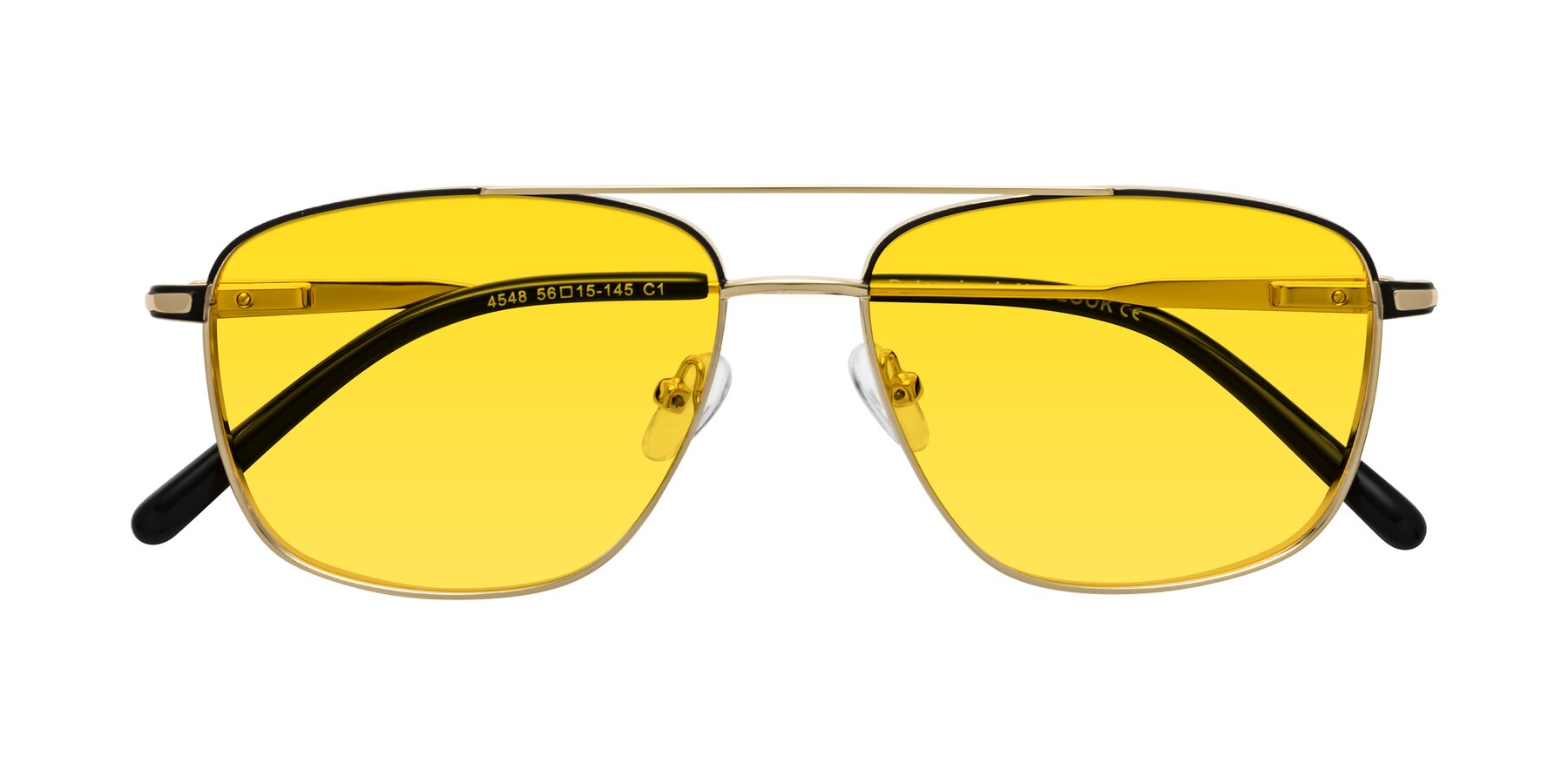 Gold/Black Grandpa Double Bridge Metal Tinted Sunglasses with Yellow Sunwear Lenses