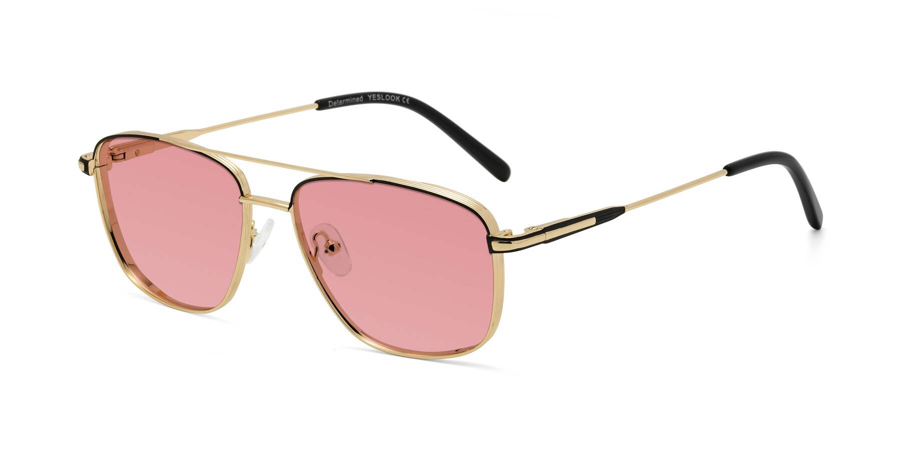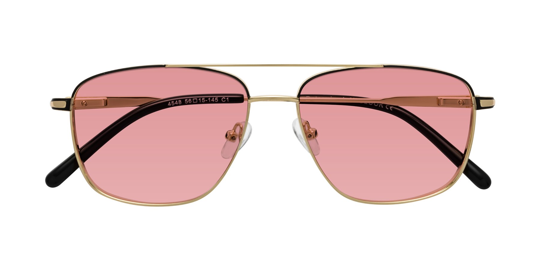 Gold/Black Grandpa Double Bridge Metal Tinted Sunglasses with Medium Garnet Sunwear Lenses