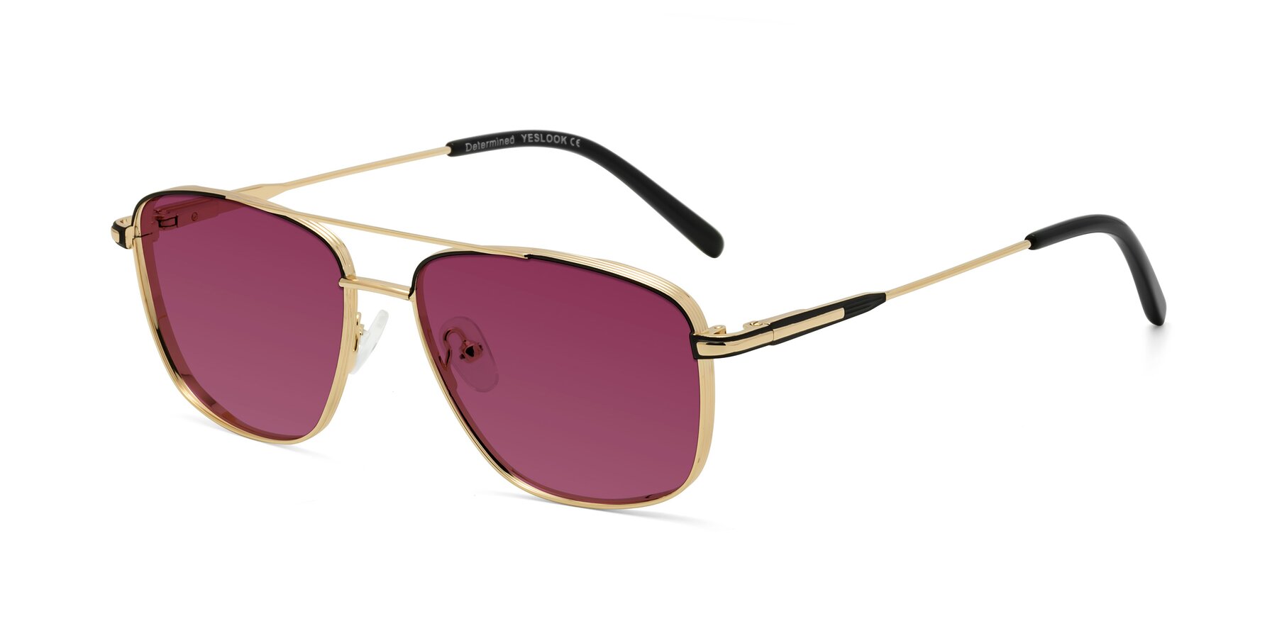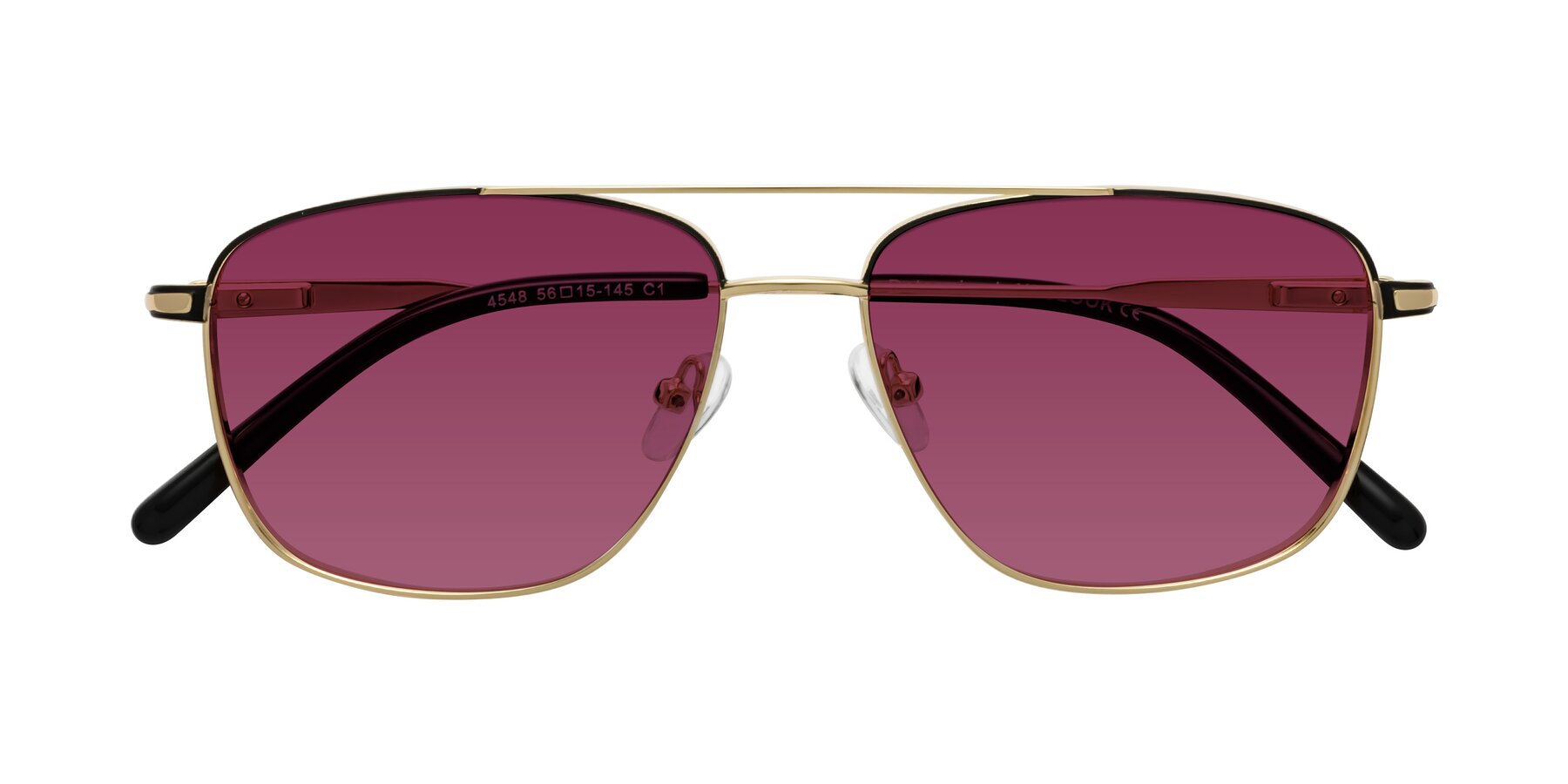 Gold/Black Grandpa Double Bridge Metal Tinted Sunglasses with Wine Sunwear Lenses