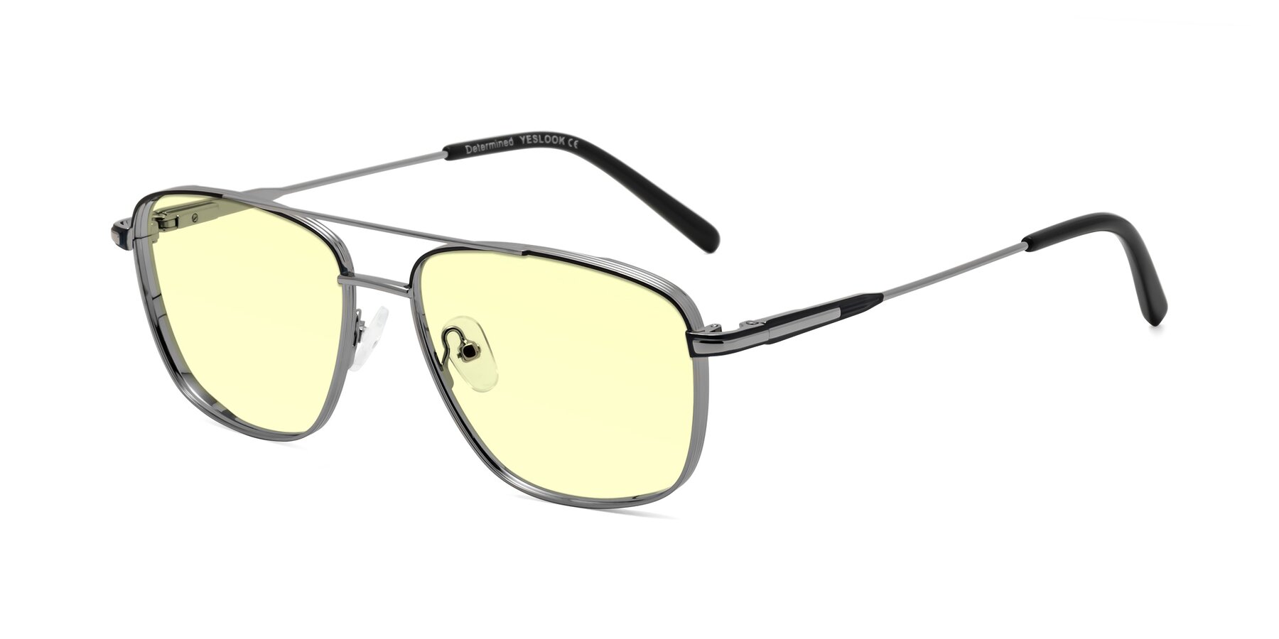 Gunmetal/Deep Navy Grandpa Double Bridge Metal Tinted Sunglasses with Light Yellow Sunwear Lenses