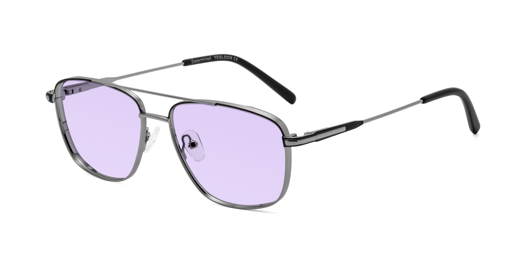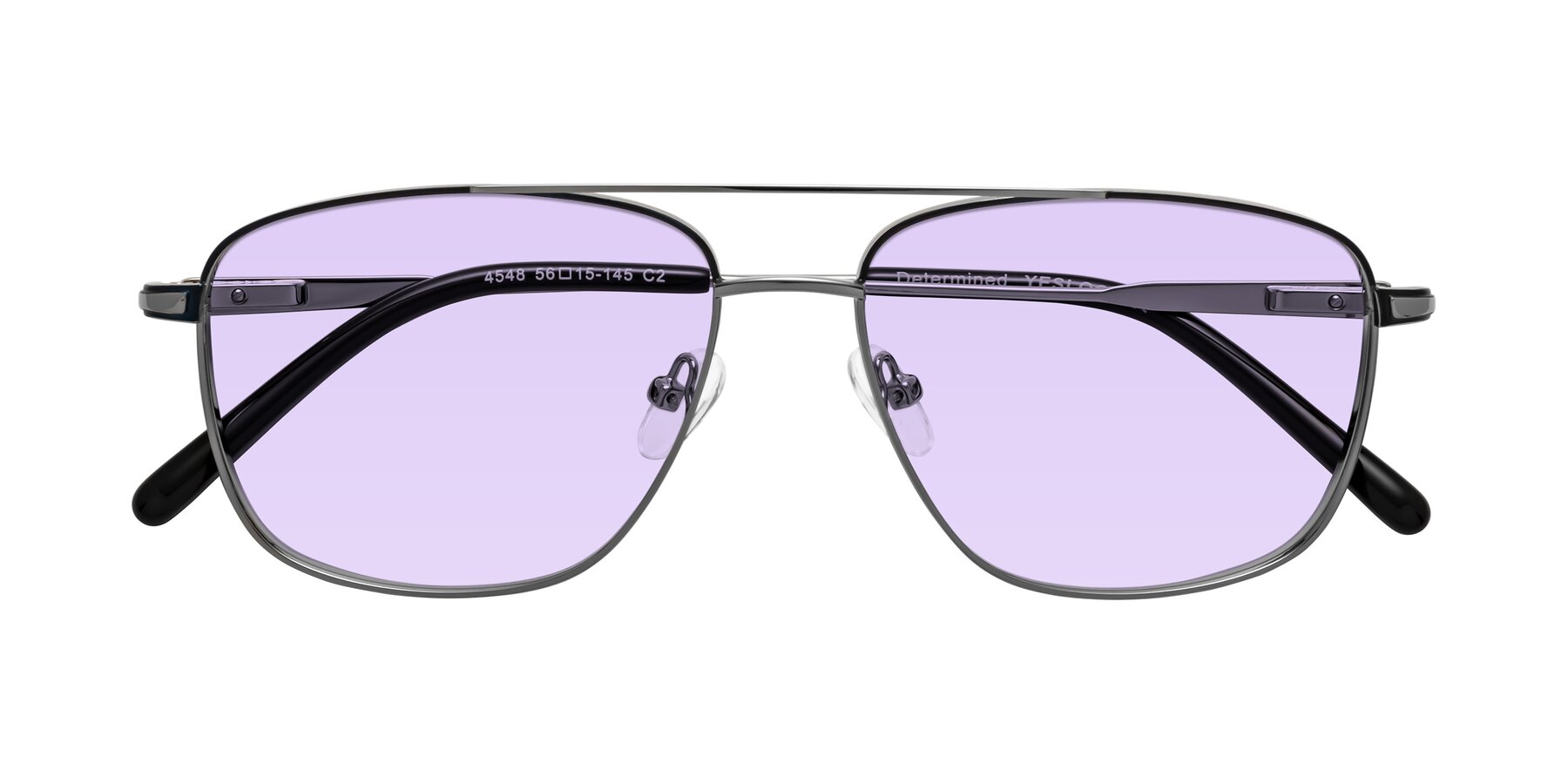 Gunmetal/Deep Navy Grandpa Double Bridge Metal Tinted Sunglasses with Light Purple Sunwear Lenses