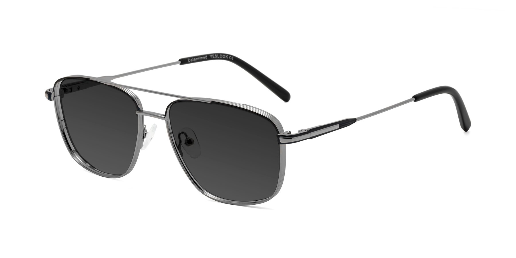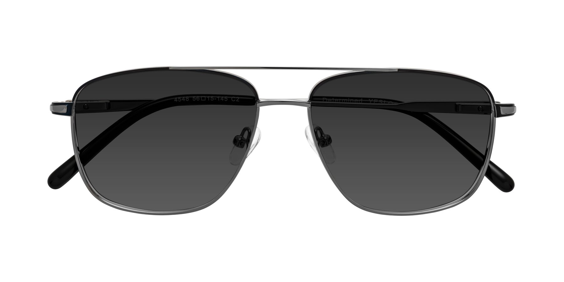 Gunmetal/Deep Navy Grandpa Double Bridge Metal Tinted Sunglasses with Gray Sunwear Lenses