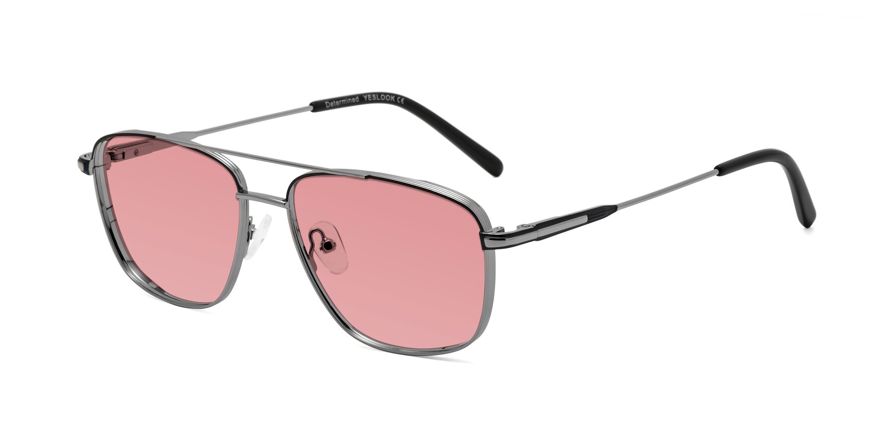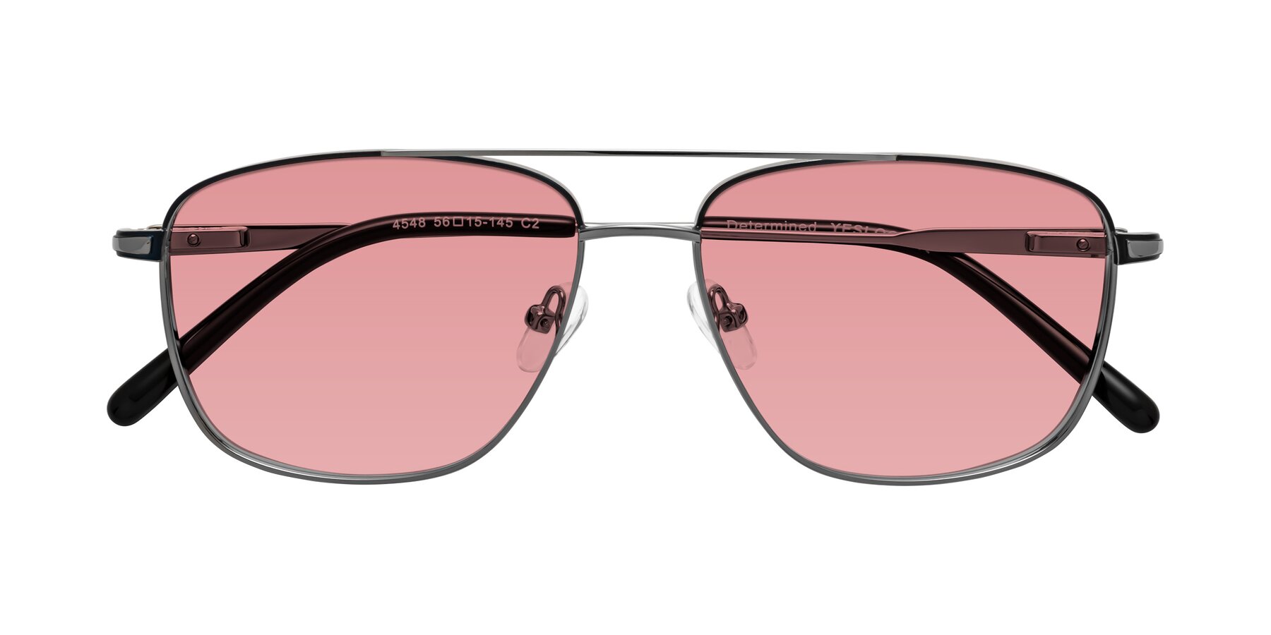 Gunmetal/Deep Navy Grandpa Double Bridge Metal Tinted Sunglasses with Medium Garnet Sunwear Lenses