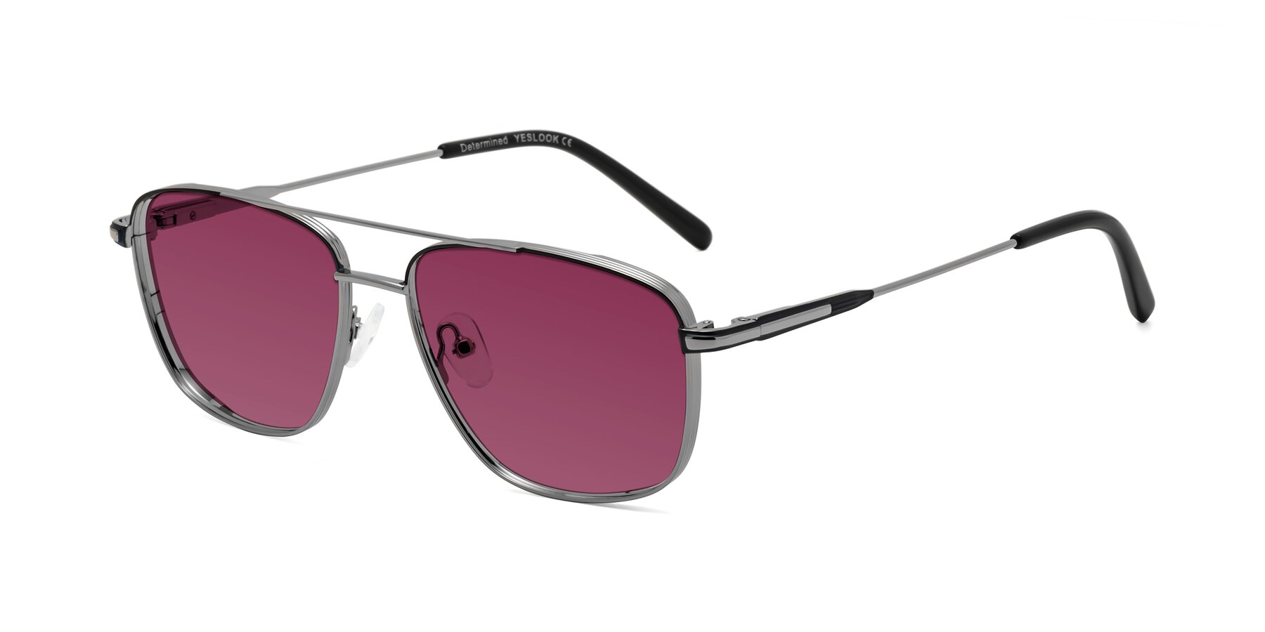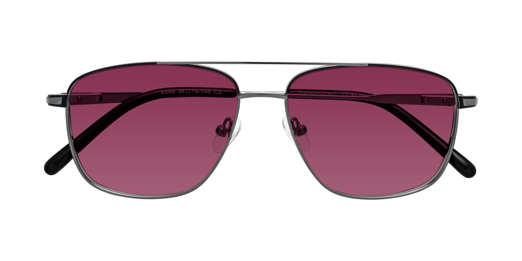 Gunmetal/Deep Navy Grandpa Double Bridge Metal Tinted Sunglasses with Wine Sunwear Lenses
