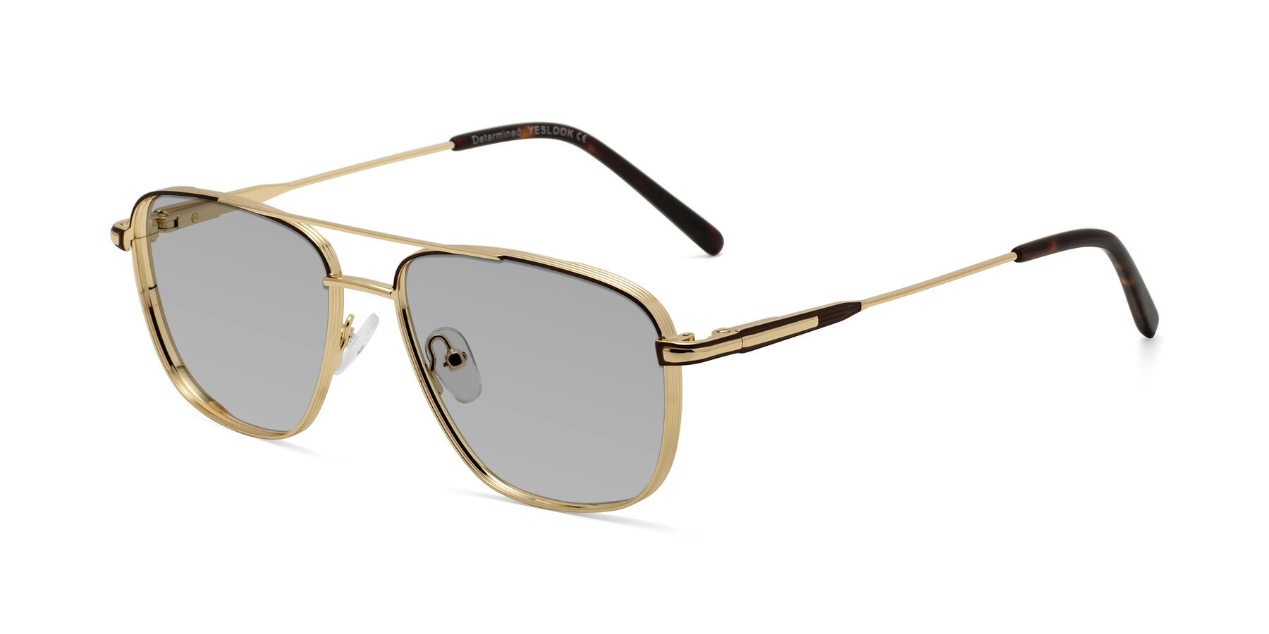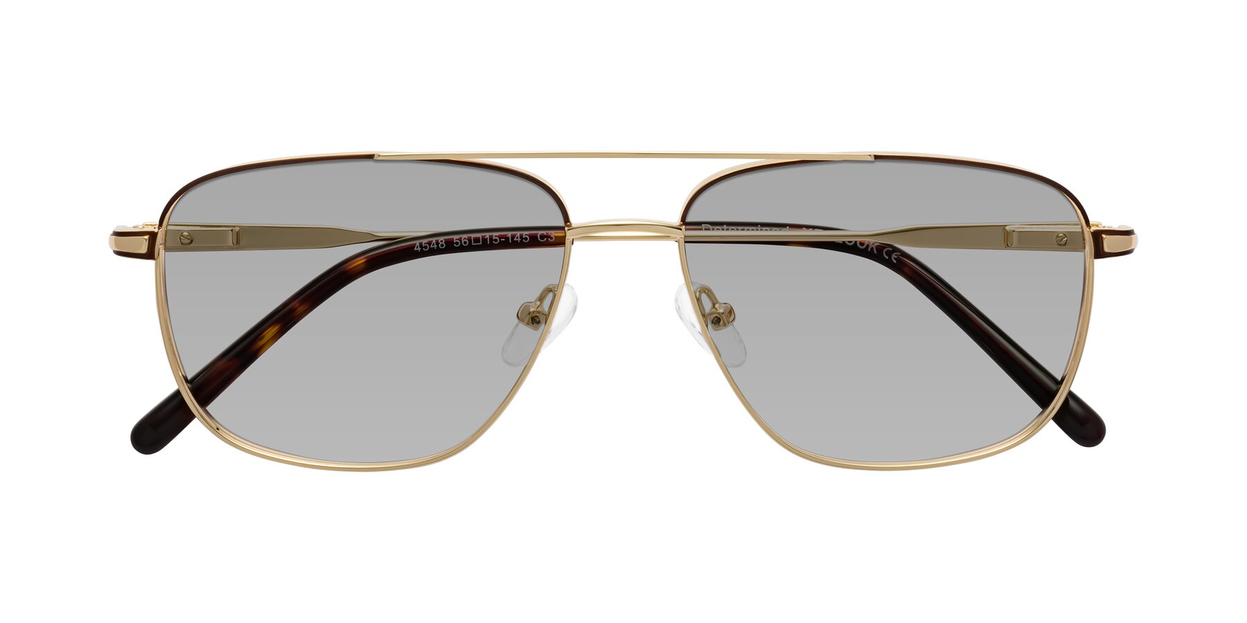 Gold/Brown Grandpa Double Bridge Metal Tinted Sunglasses with Light Gray Sunwear Lenses