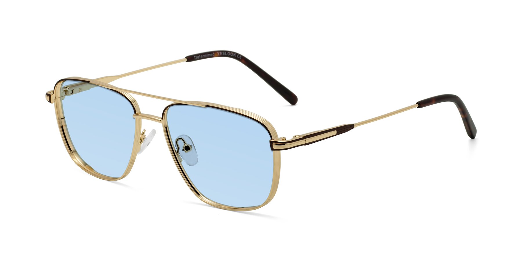 Gold/Brown Grandpa Double Bridge Metal Tinted Sunglasses with Light Blue Sunwear Lenses