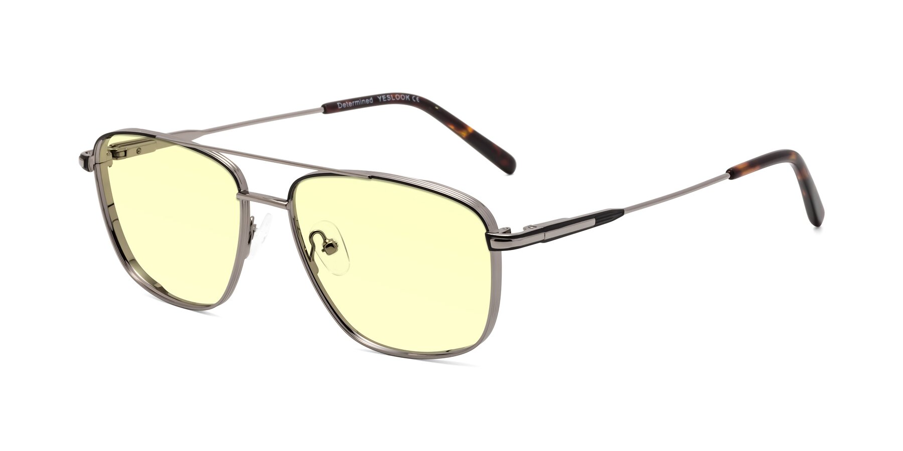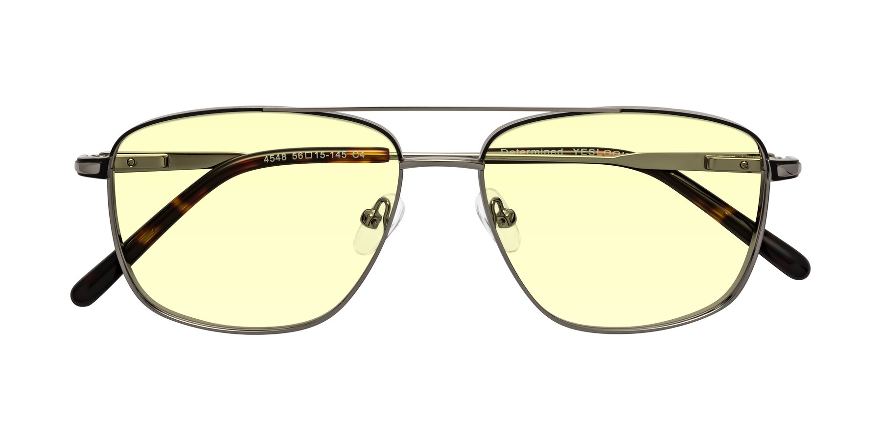 Gunmetal/Black Grandpa Double Bridge Metal Tinted Sunglasses with Light Yellow Sunwear Lenses