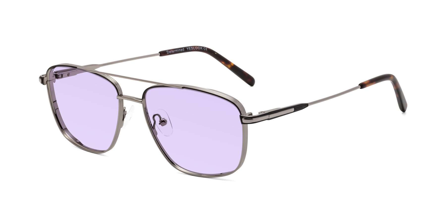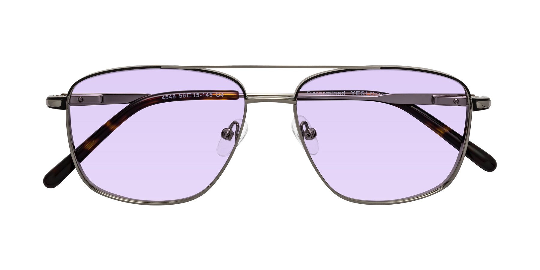 Gunmetal/Black Grandpa Double Bridge Metal Tinted Sunglasses with Light Purple Sunwear Lenses